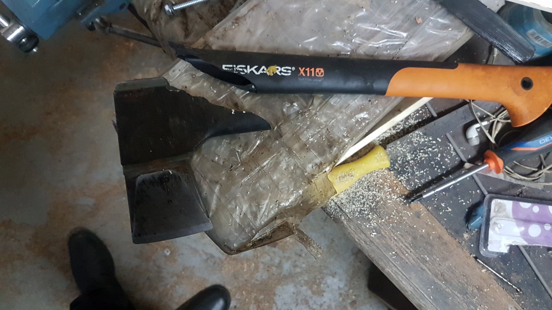Всё может сломаться. 10 лет служил верой и правдой. А чужих рук не выдержал, правда мороз в этот день был. Потом встречал в инете отзывы, что не любит фискарс морозов за -20. Но как с таким топором в лесу остаться, точнее без топора. Как вылечить?