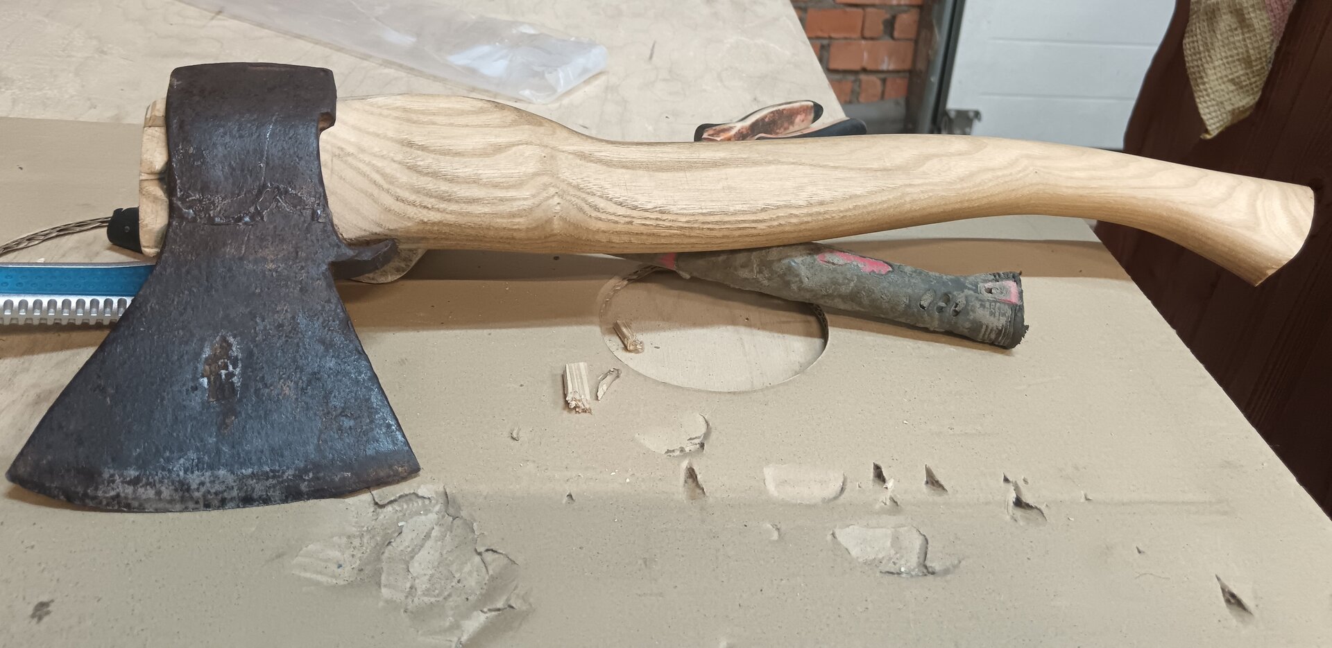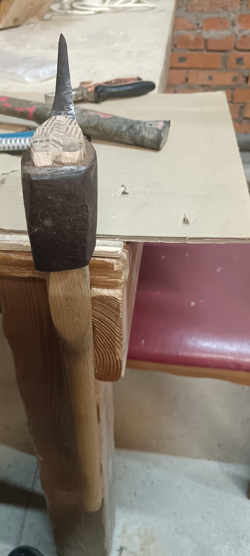 Покупал топор с вклеенным клином в процессе эксплуатации топорище рассохлось, а клин дальше не прогнать, по итогу вбивал металлический клин.Клин нужно однозначно сажать на клей. Это может быть клей ПВА или любой другой, кроме клеёв на каучуковой основе. Клей не только предохраняет клин от выскакивания в процессе эксплуатации. Свежий клей облегчает забивание клина при сборке топора, играя роль смазки" - Радул А.М. "Топоры, история и практика"
