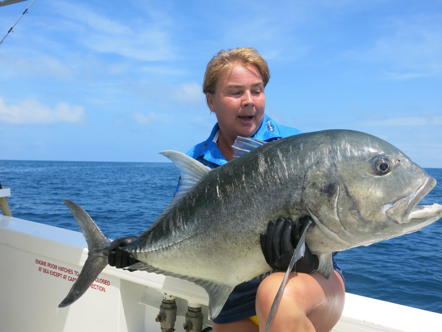 Я не видела, что бы кто-то вывел тревалли, более, чем в 48-50 кг. Она как хапнет, так и летит со сверхзвуковой скоростью на риф. Мне повезло, мы не стояли на якоре, и шкипер потихонечку отвел яхту от рифа. Такой маневр позволил "оттащить" GT от рифа, не оборвав шнура. Риф режет даже стальные поводки.