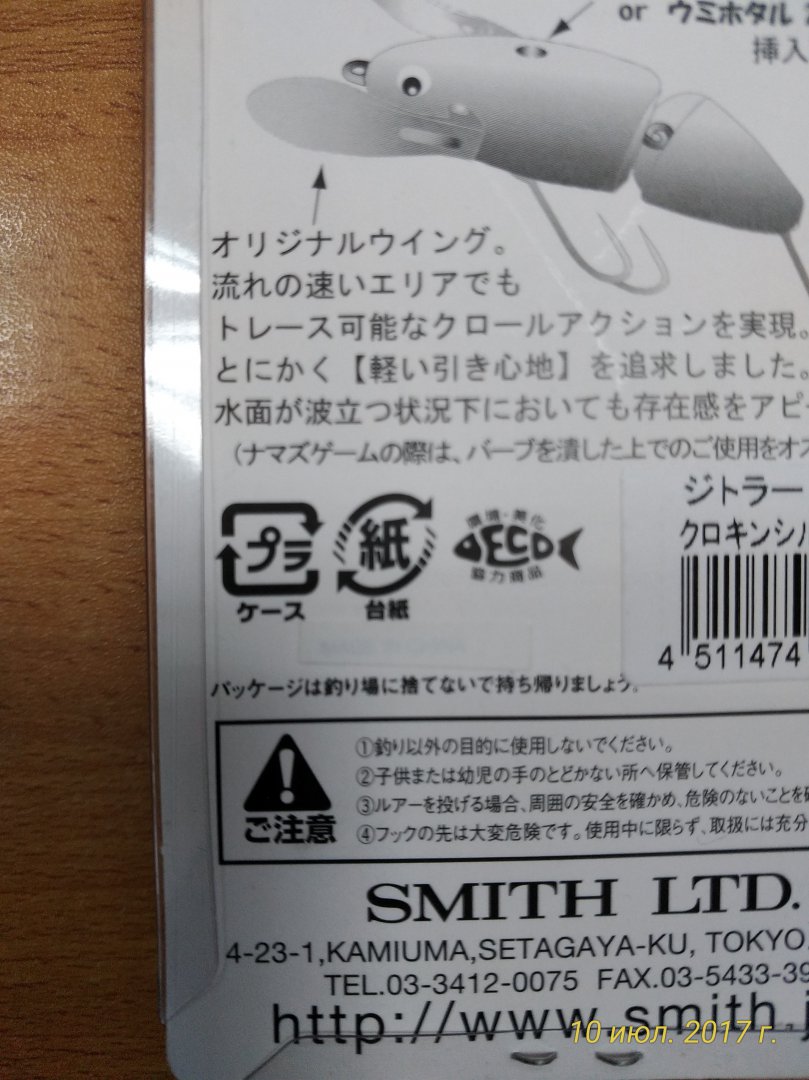 Сейчас есть пару минут, сфотал. К сожалению не храню упаковки от воблеров, так что несколько валялось. На них - Япония. Но даже если и было бы написано - Китай, то не переживал, уловистость проверена мной.