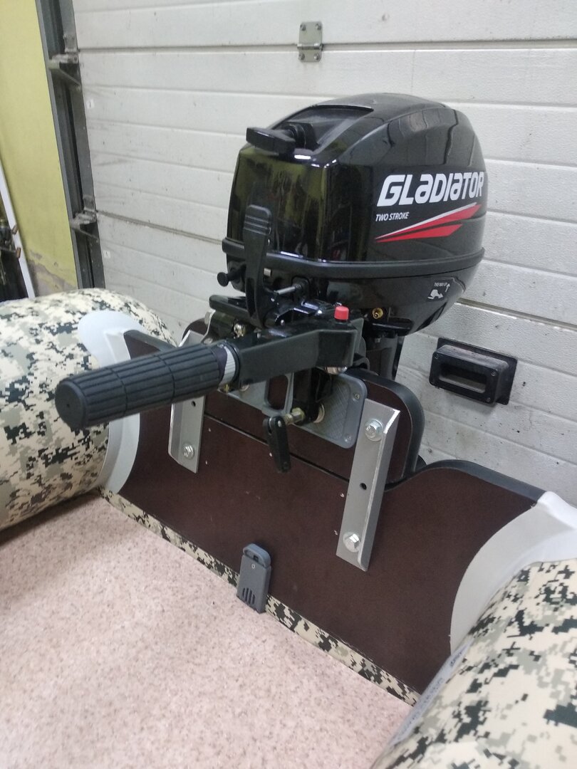Думал транец будет накладной, но пришлось делать надставку. Хорошо в гараже нашел алюминиевый швеллер толщиной 5 мм, распустил его на уголок и закрепил надставку. Мотор на 1 ой дырдочке встал отлично, далее будет испытание на воде.