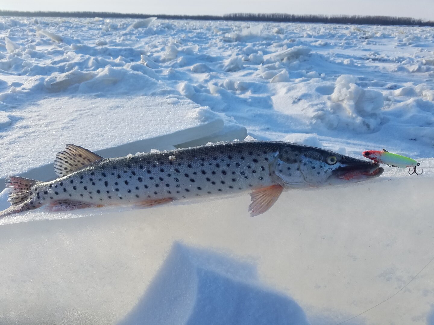 Нууу, что я говорил - пошло выражение в массы, а вы все поленница, да поленница.Щучьи заборы, сделать не получилось, сфотал одну штакетину с удачливым раттлином, на торосе. Итог~ 4шт, два схода.