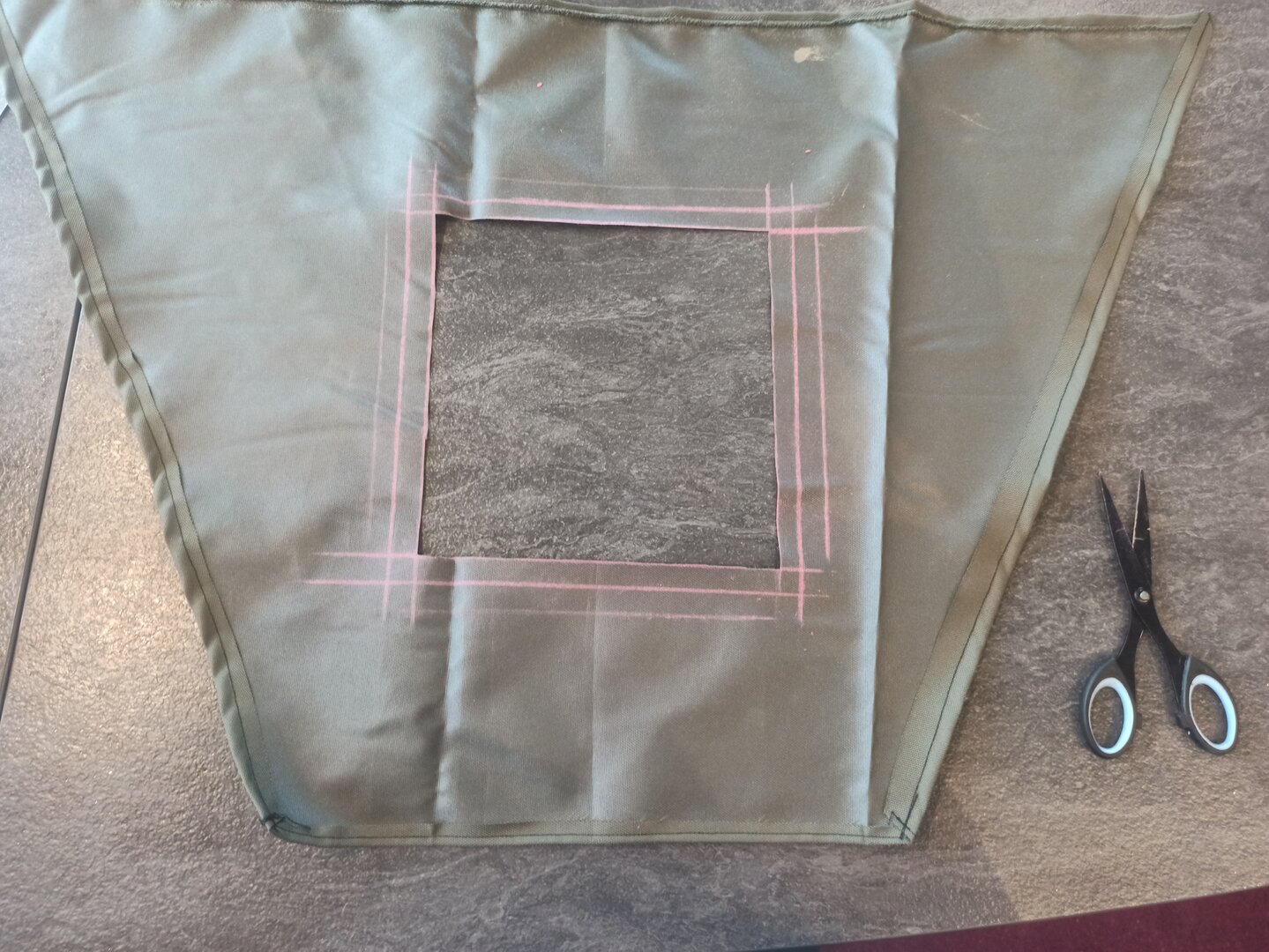 Появилось немного времени на так сказать "рукоблудие", наши руки ведь не для скуки! Поэтому решил смастерить разделку под трубу в новую палатку куб. Снимаем гибкое стекло, замеряем, размечаем и погнали!