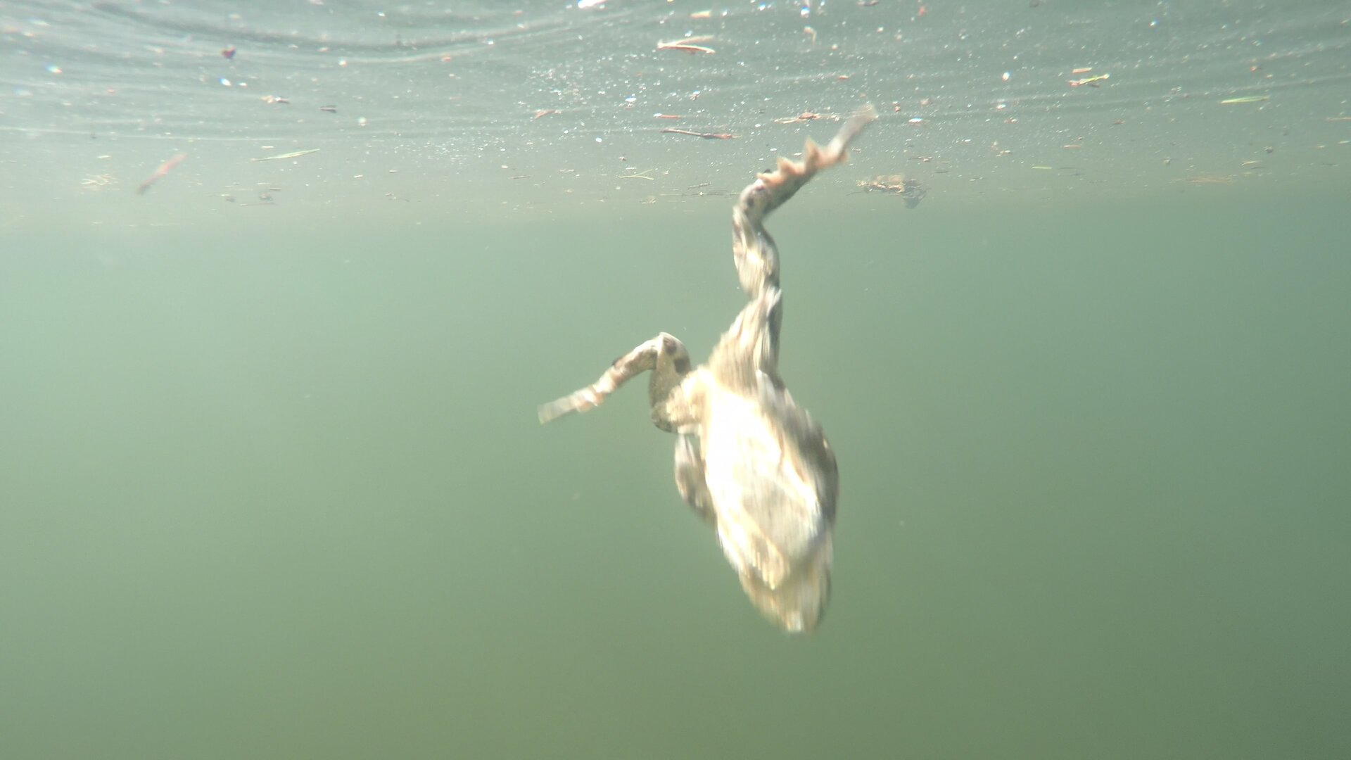 Это точно, другая рыба этому пока ещё не научилась.В том, что она дёргает снизу за махалку, которую ты держишь в руке.