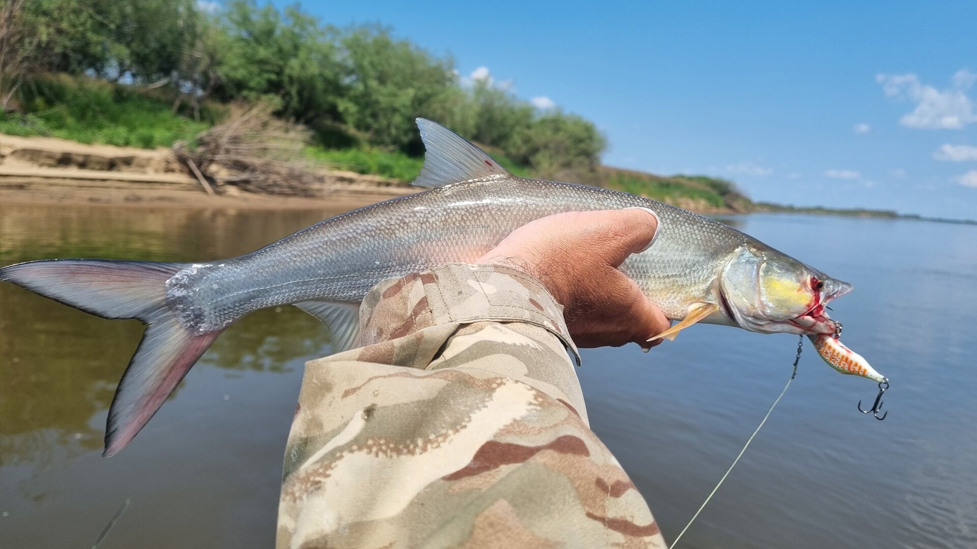 Воронеж -3, воскресенье 10 утра. Щучка два раза нападала на вертушку аккуратненько, схватить ее не удавалось. На третий раз взяла блесну простенькую, да заглотила так, что проткнула себе глаз и жабры. Пришлось пустить ее на сковородку, ибо она через пять минут умерла... Вот такая история. А еще прям у берега во время колебания воды от мимо проходящих лодок, вылазил на берег змееголов, чтобы посмотреть ситуацию на суше, подышал и пошел ко дну, и так два раза)