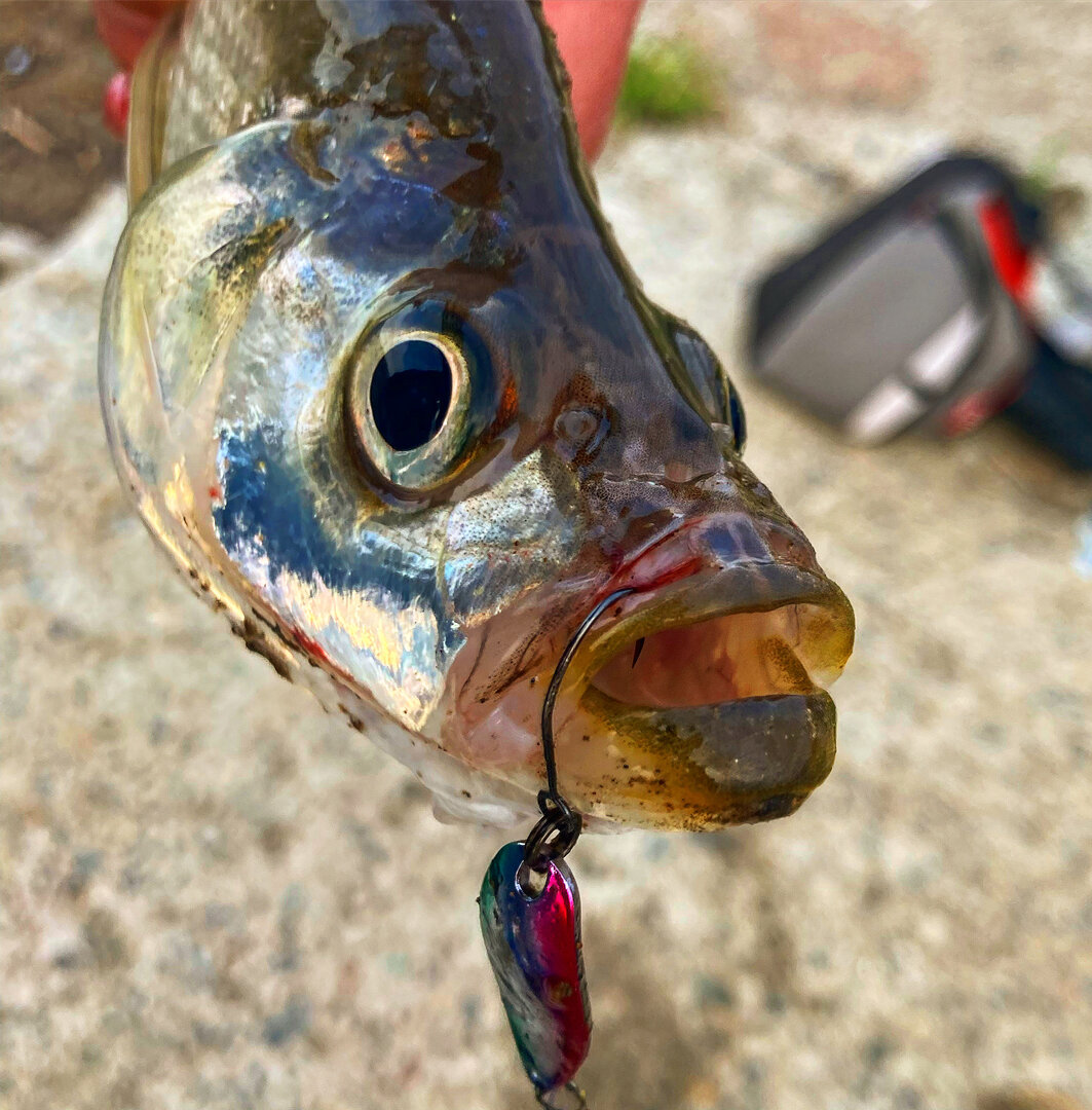 Вчера ездила на озеро на карася. Рыбачила на перловку и поймался верхогляд чуть меньшего размера😀на перловку. Очень удивило.