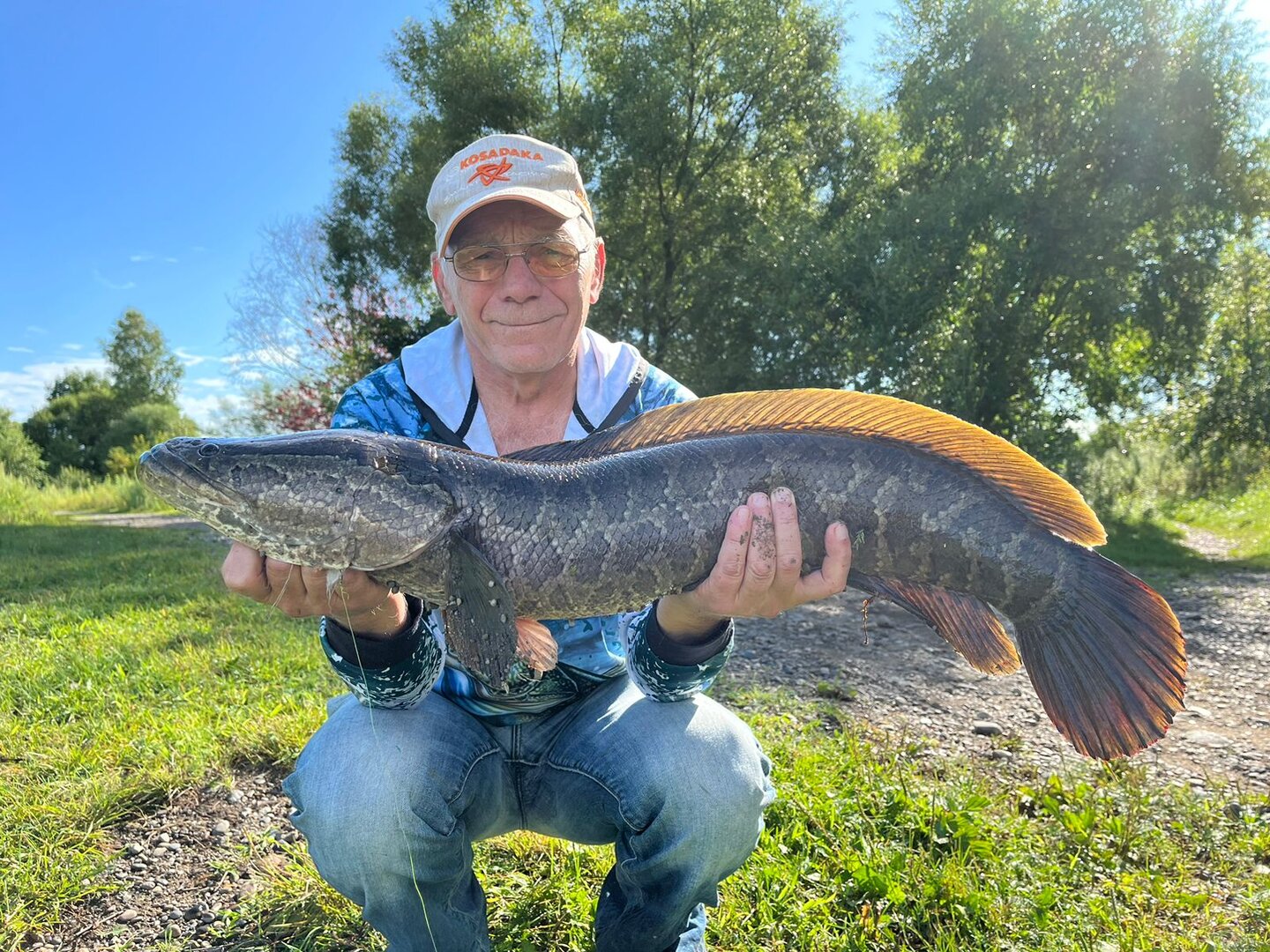 В субботу народ в низовьях горной речки отрывался по щуке. В воскресенье с сыном рванули туда , в надежде её потаскать. В итоге до обеда одна щт. у сына, килошка. Видно погода внесла коррективы, в субботу было пасмурно, в воскресенье солнечно. Но мой утренний заброс вертушки №3 Meps по чистой воде, рядом с травой и кочкой сделал поездку не напрасной. Удар, еле удержал спининг, далее борьба, визг фрикциона и он, за три метра до берега, заcкочил в траву, долее понимая что шнур тонкий сын отправился в воду и совместными усилиями рыба была на берегу. Хороший змей на 4.500, а щучку так и не поймал. Шнур SIGLON 0.153, палка Salmo Diamond Jig 25, катушка. Daiwa Sensor 2500. Адреналинчика хватанул и удовольствие получил.