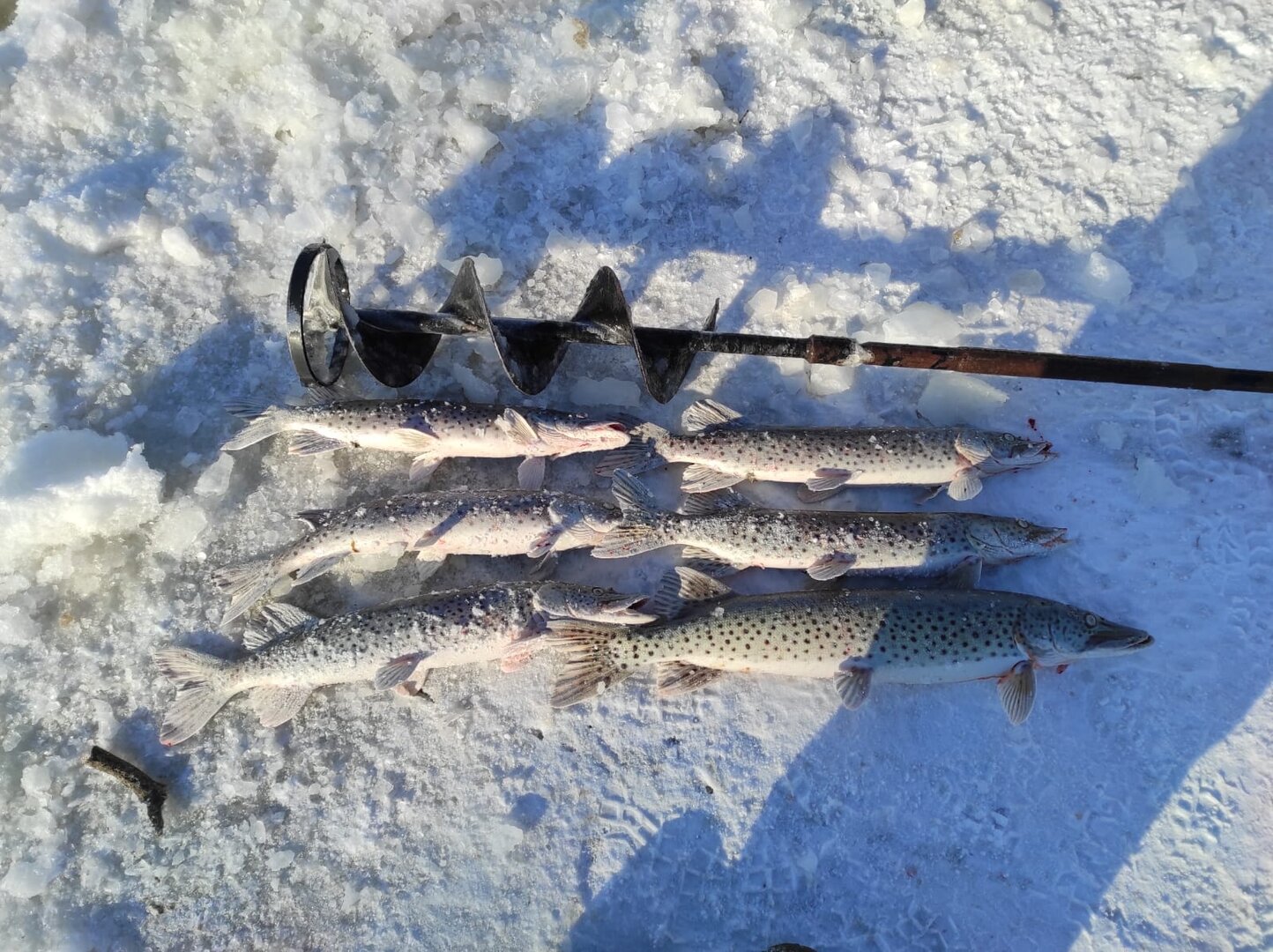 У берега очень сложный лед, вода росла после ледостава, наледи давили. Лед-вода-лед и вот этот пирог местами за метр. Шнека и две недели назад там не везде хватало.Длинны шнека не хватает?
