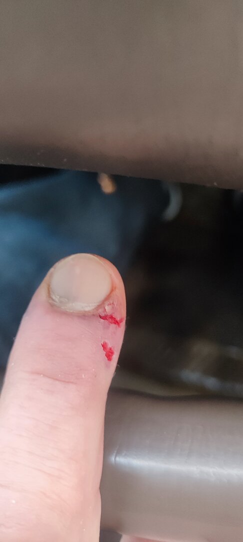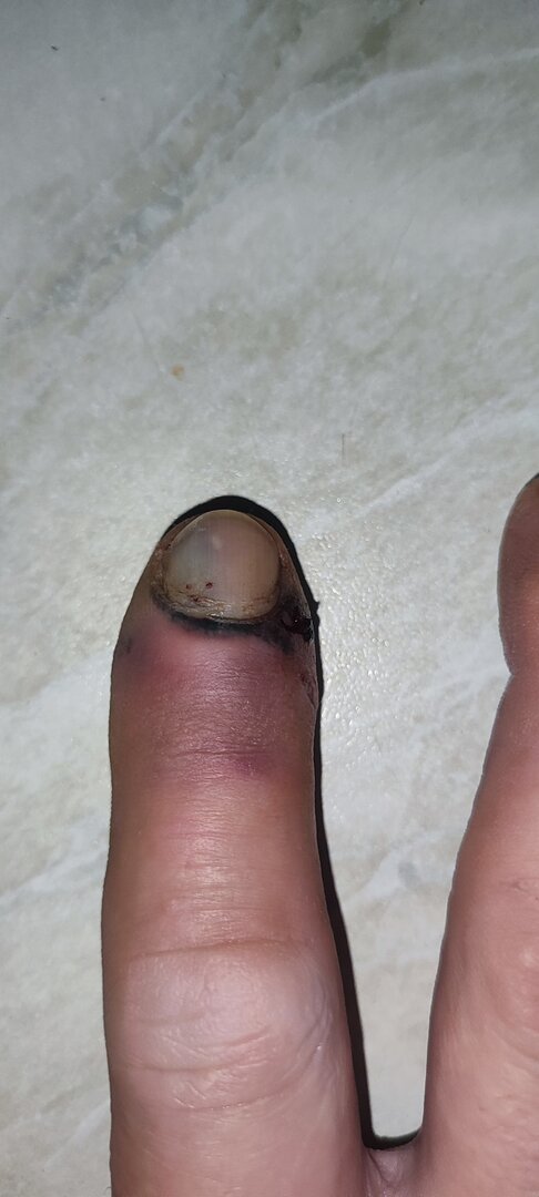 А теперь он уже вообще без ногтя, но всё же в" прищепке".