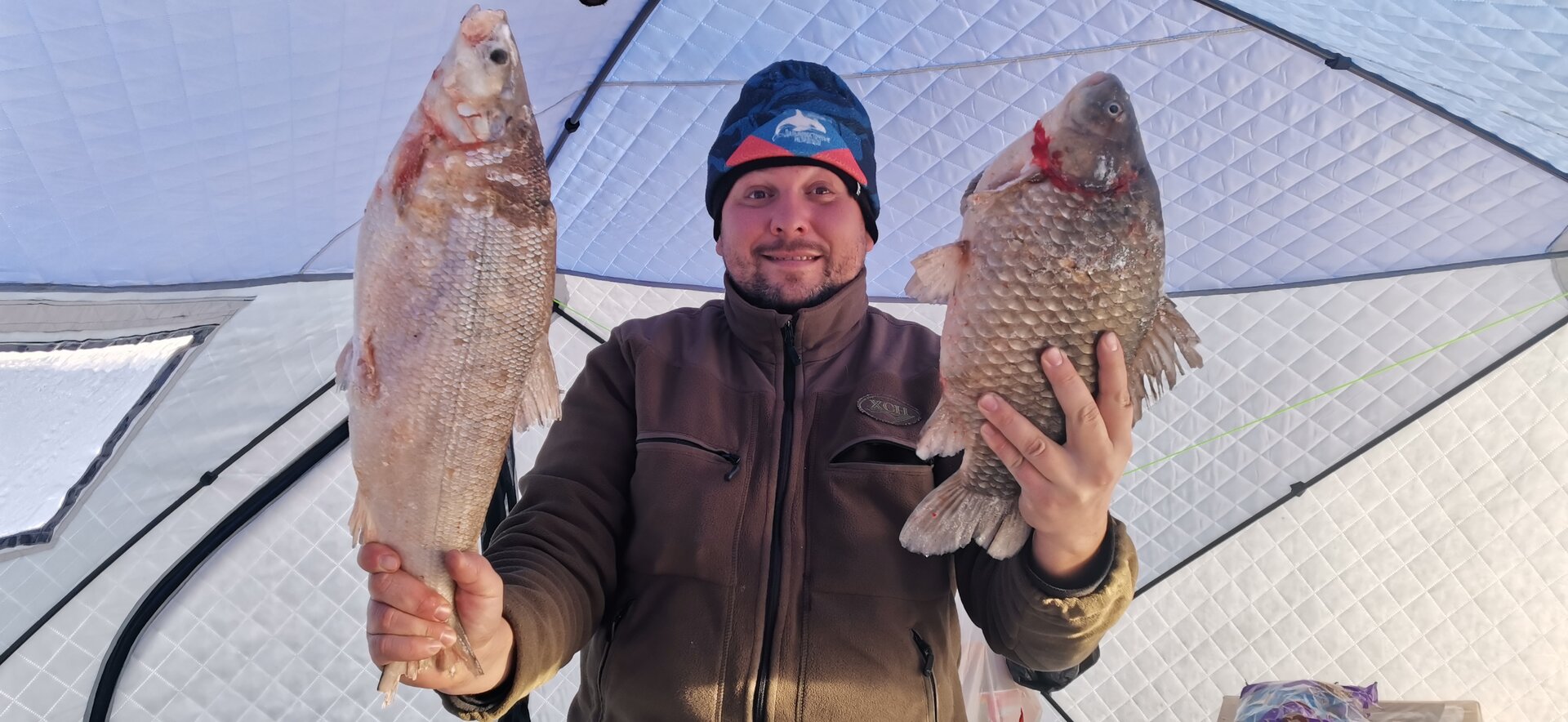 Мы туда приезжали до этого, было четыре Бурана. Все дни, как поставили палатку - никого. Только в день выезда приехал хозяин лунок. Он там пешню и черпак оставлял.