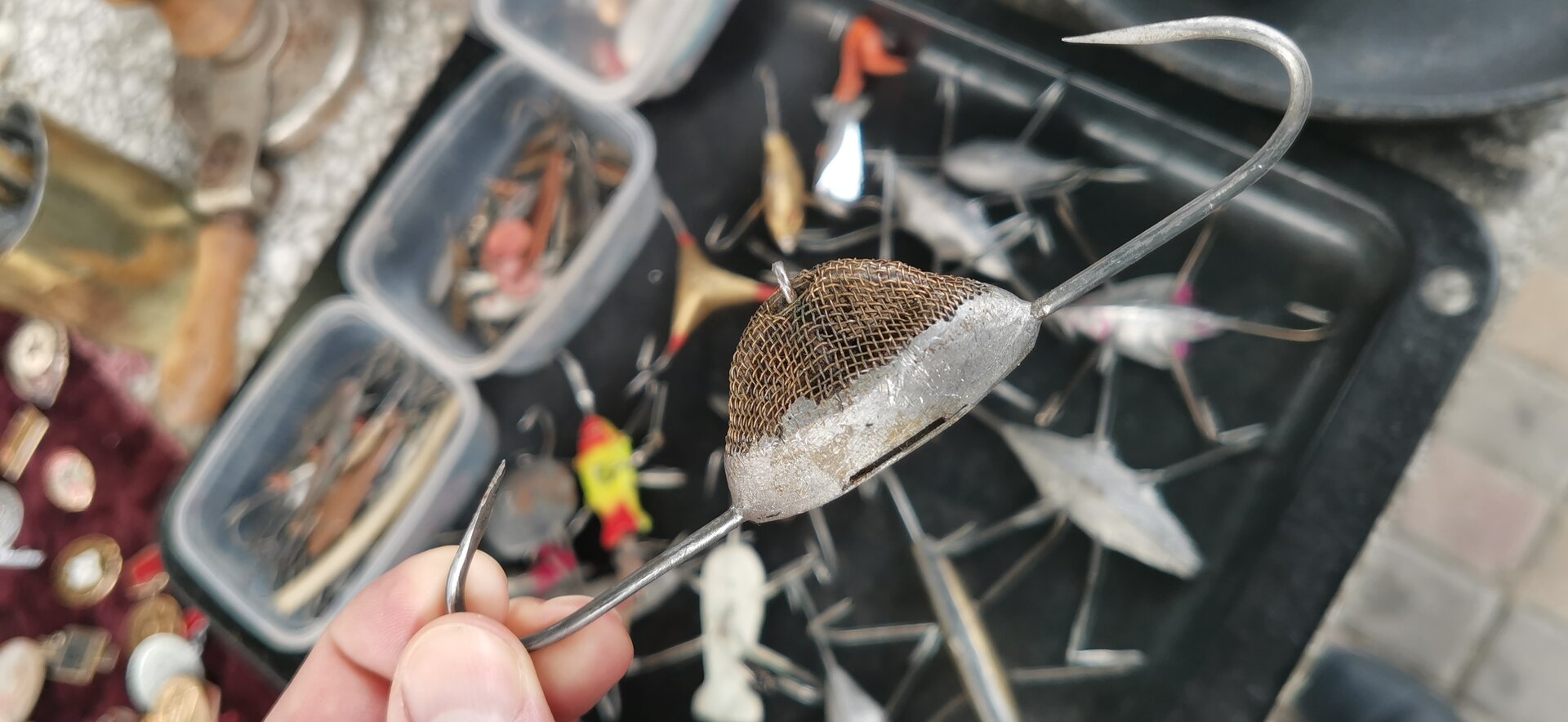 Ловчая вещь!Красится в тёмный цвет.Набивается через нижнее отверстие,красной икрой(Вот такую блесну сегодня увидел на Центральном рынке.