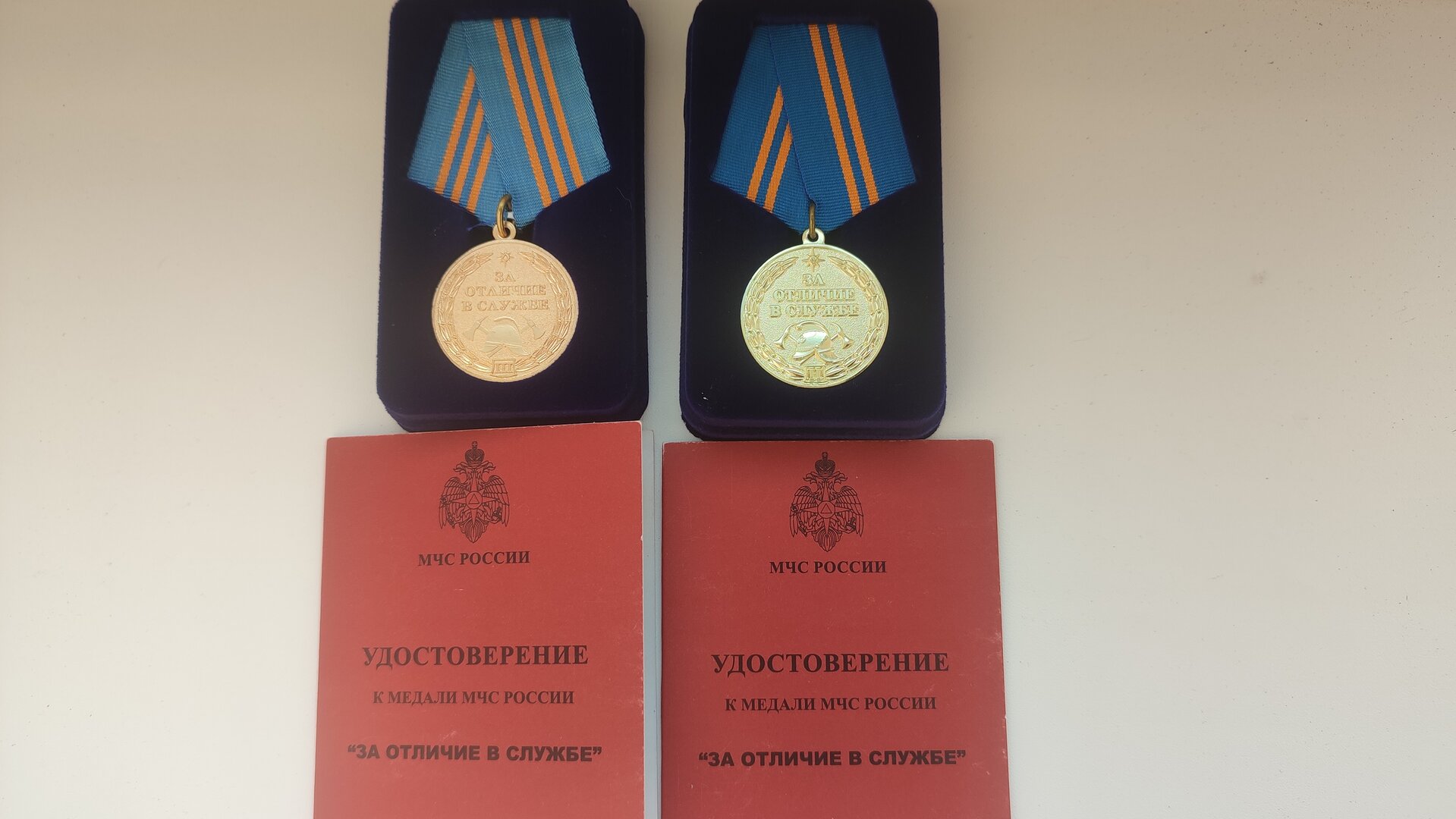 а почему полоски разные и цвет металла?За выслугу в Государственной противопожарной службе. После 10 и 15 лет. Ветерана труда дают. Но хватило бы и одной медали.