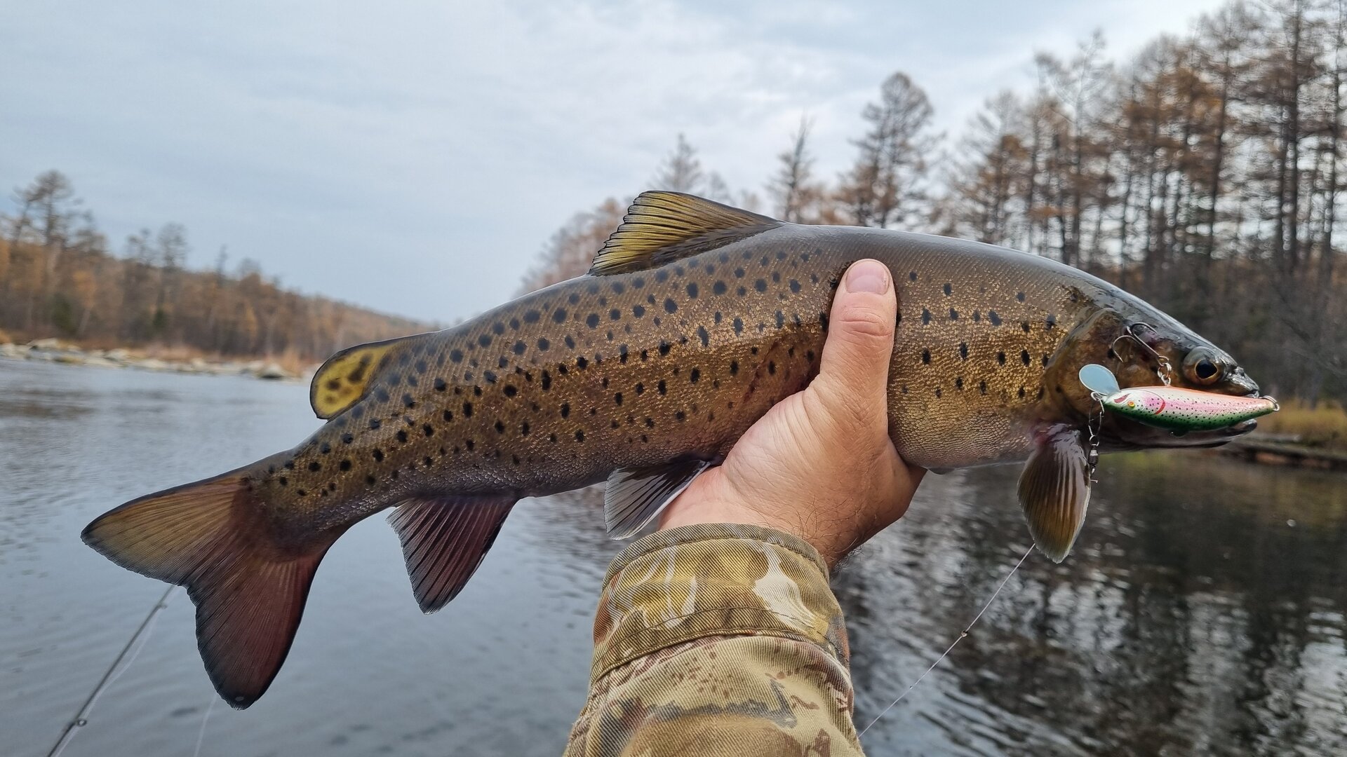 Заметили, что весной в основном ловиться острорылый ленок. Еще говорят, что он поднимается на нерест или осенью перед ледоставом. "Местный" ленок темный и морда округлая.