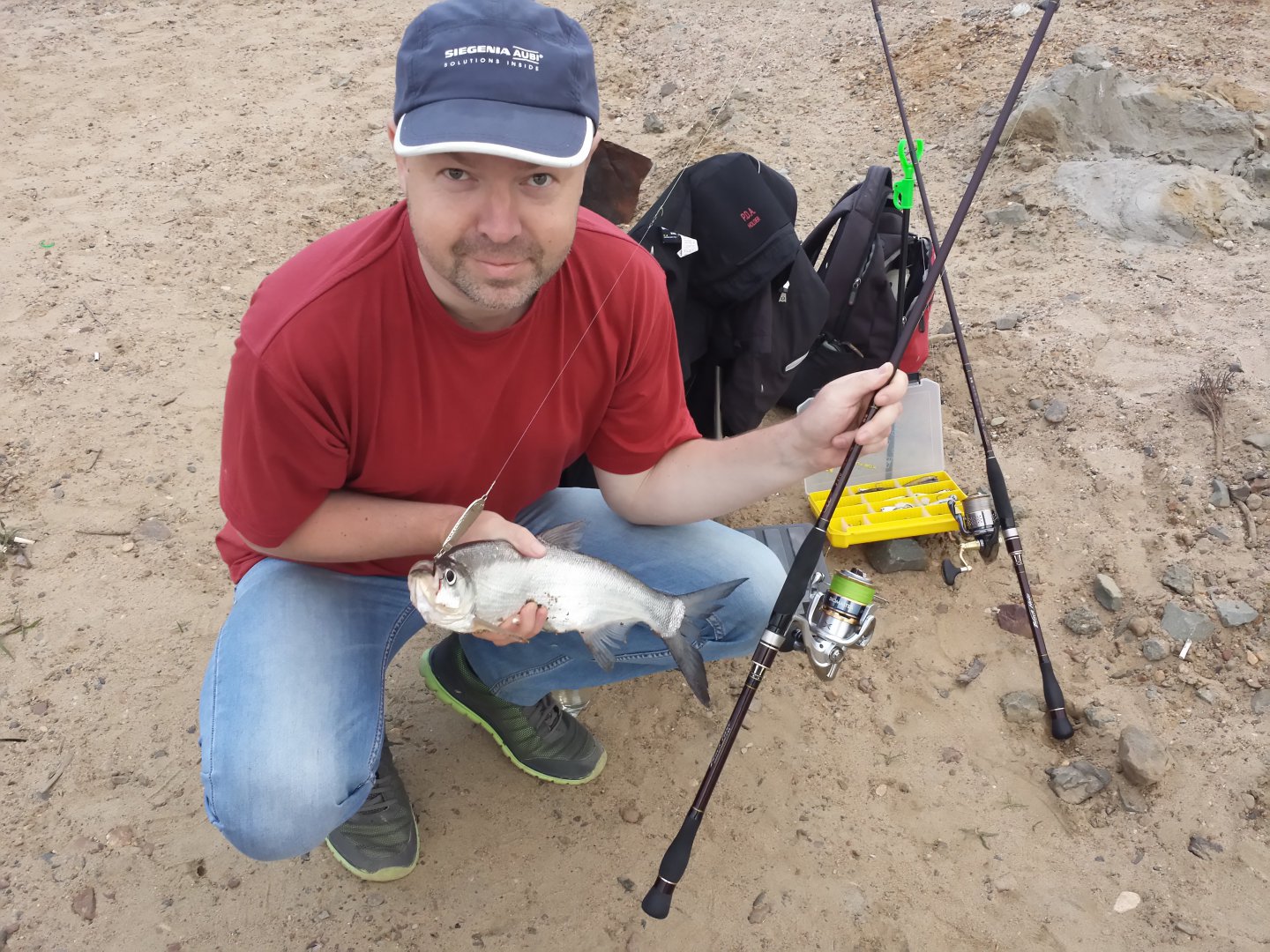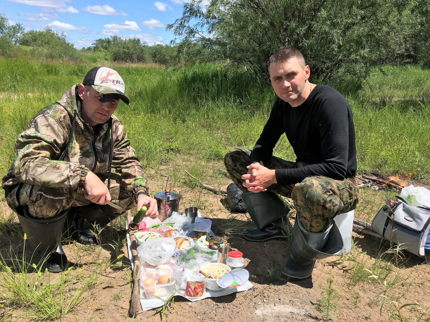 Выбрав более - менее продуваемую ветром полянку, накрыли импровизированный стол, пообедали, немного отдохнули и возобновили ловлю вернувшись на прежнее место..