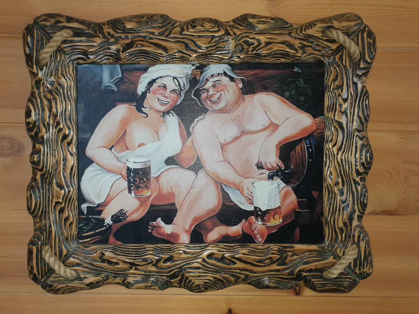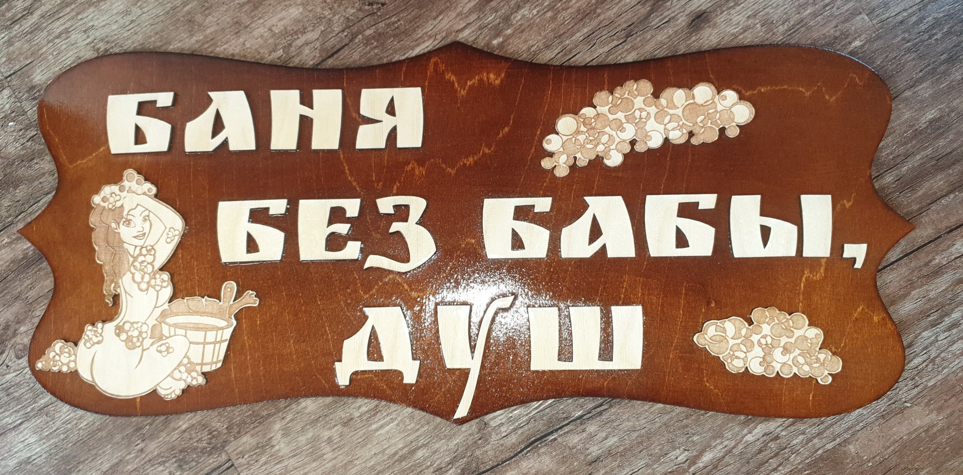 Например они делают очень качественные, красивые банные таблички. В том числе и под заказ. У нас в магазинах, торгующих банными акцессуарами ничего хорошего. Дешевая не красивая кустарщина. Если будешь делать хорошие вещи, по всей России можно продавать- интернет в помощь! Далее- банные картины. Картинки можешь любые, самые прикольные сам подбирать.