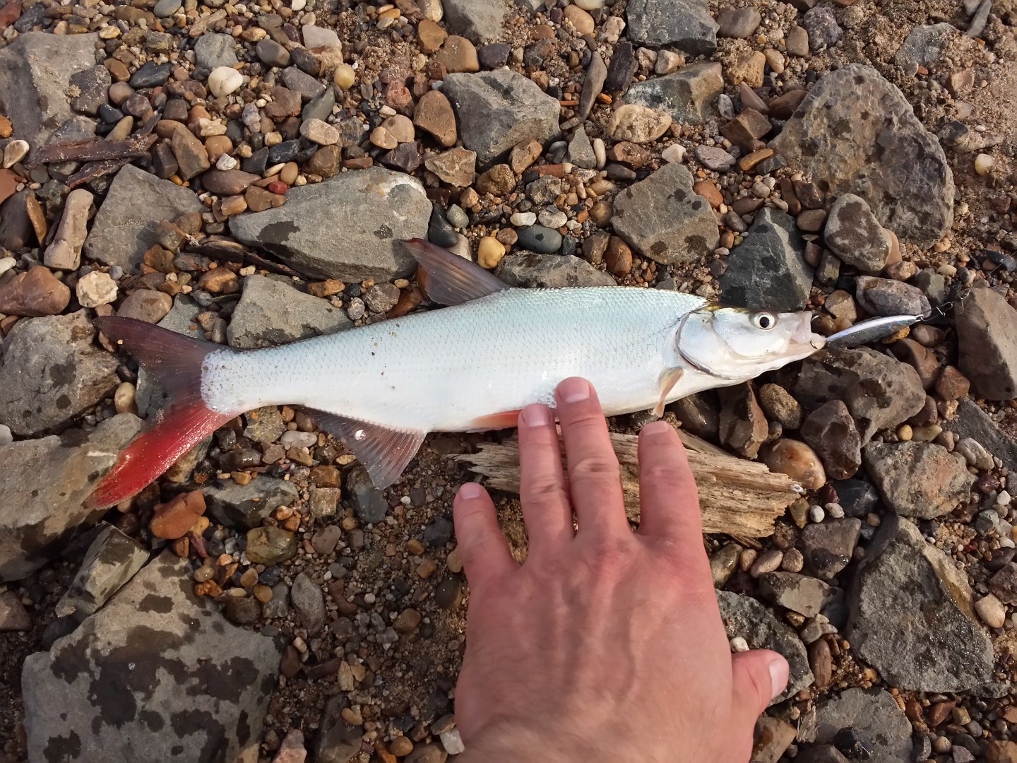 Да,Виктор,это подуст чернобрюшка,летом сугубо мирная рыбка,питающаяся преимущественно диатримовой водорослью,а проще говоря,тиной с камней.Но,похоже,с похолоданием воды и он решил мальком полакомиться,всё калорийнее,чем тина;)