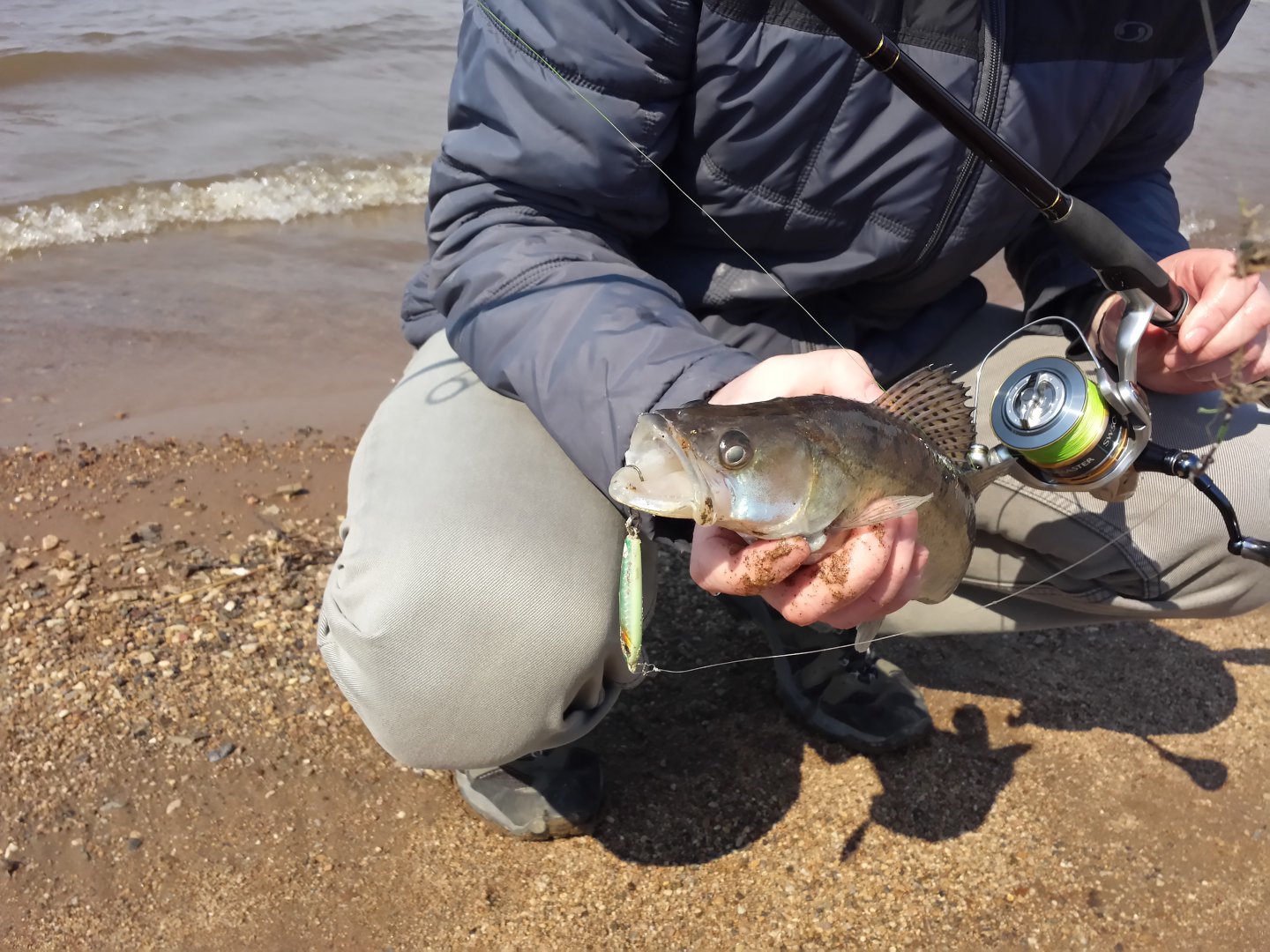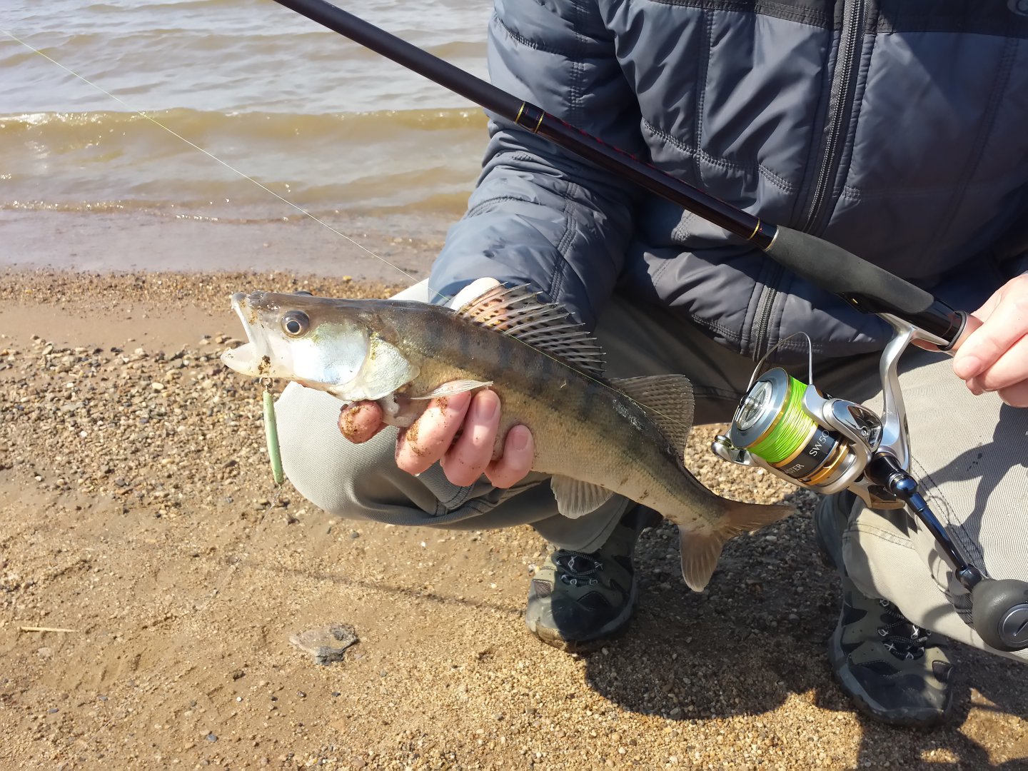Приветствую! Условия в этот день были не идеальными, очень сильный ветер и грязная вода со слабым течением. Целью рыбалки было проверить шнур нанофил 0.10 с пилькерами до 25 грамм, как будет выдерживать на разных забросах. В позапрошлом сезоне использовал нанофилов 0.12 оказался толстоватым для приманок до 21 грамма. В этот раз я начал с 15 грамм и покидав часок был доволен вылетом и дистанцией которую преодолевает приманка. Но ветер усилился и Виктор посоветовал поставить таинственную приманку с оранжевым брюшком из моей коробки. Которая ориентировочно весит 20 грамм. Она за счет своей оптикаймой формы лучше преодолевала ветровой поток и приземлялась на дистанции до 70-75 метров. После приводнения я делал проводку у дна, если приманка касалась дна то я делал несколько подкидывание спиннингом и проводил выше. На одном из подкидывание на паузе и ударил судак, сначала подумал что верходгяд но это был не он. Место было у берега песчаным, с плавным свалом до ориентировочной глубины до 5-8 метров. Взял он мою приманку на дистанции 40-50 метров максимум. Как боец он не о чем, шел спокойно только у берега чуток по сопротивлялся и все.