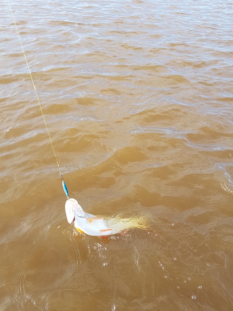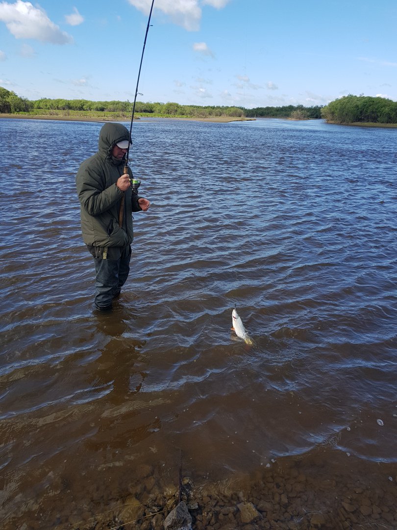 Ни о какой рыбалке на блесну в русле в таких условиях не могло быть и речи, а домой ехать совсем как не хотелось. Нахожу затишок за одним из многочисленных островов с подветренной стороны, забрасываю блесну, делаю проводку и тут же следует удар и сильнейшая потяжка. Ну, думаю, трофей - знатно сопротивляется. Плавно подвожу к лодке и…моему удивлению не было конца, когда из воды появился серебристый хвост.