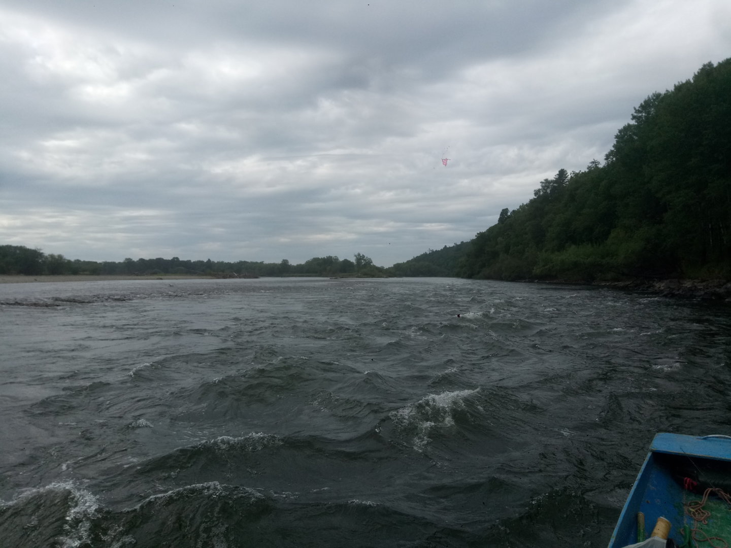 Ага , на фото не видно , но можно приехать на устье Матая и посмотреть . Если мерять от подошвы волны до гребня примерно по колено стоит только внимательно глянуть слева от носа лодки .