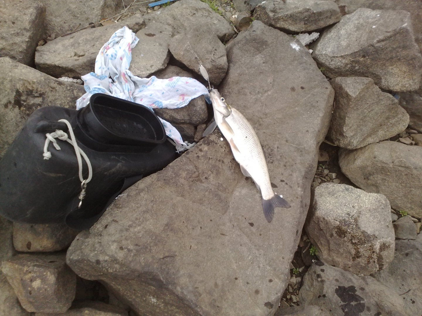 Работал, как и вчера, белый мини-кастматер от Герман 7 граммов. 10,5 граммов почти не работал, для пробы ставил ниакис 9 граммов, блюфокс рыбку, пару меппс №4 (black fury и aglia long) - только на блюфокс был пойман один краснопёр, остальные приманки не работали.