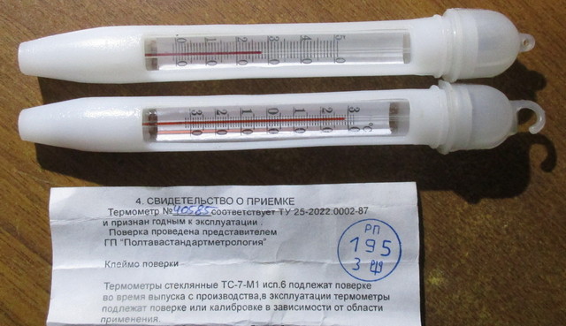 Насколько я знаю, единственный спиртовой термометр с паспортом и госповеркой, который можно встретить в свободной продаже - ТС-7 (от -30 до +30). Точно такой же по виду ТБ-3 (от 0 до +50) - без поверки и паспорта, стоит раза в 3-4 дешевле. Искать в "Медтехнике". Посмотреть вложение 340169