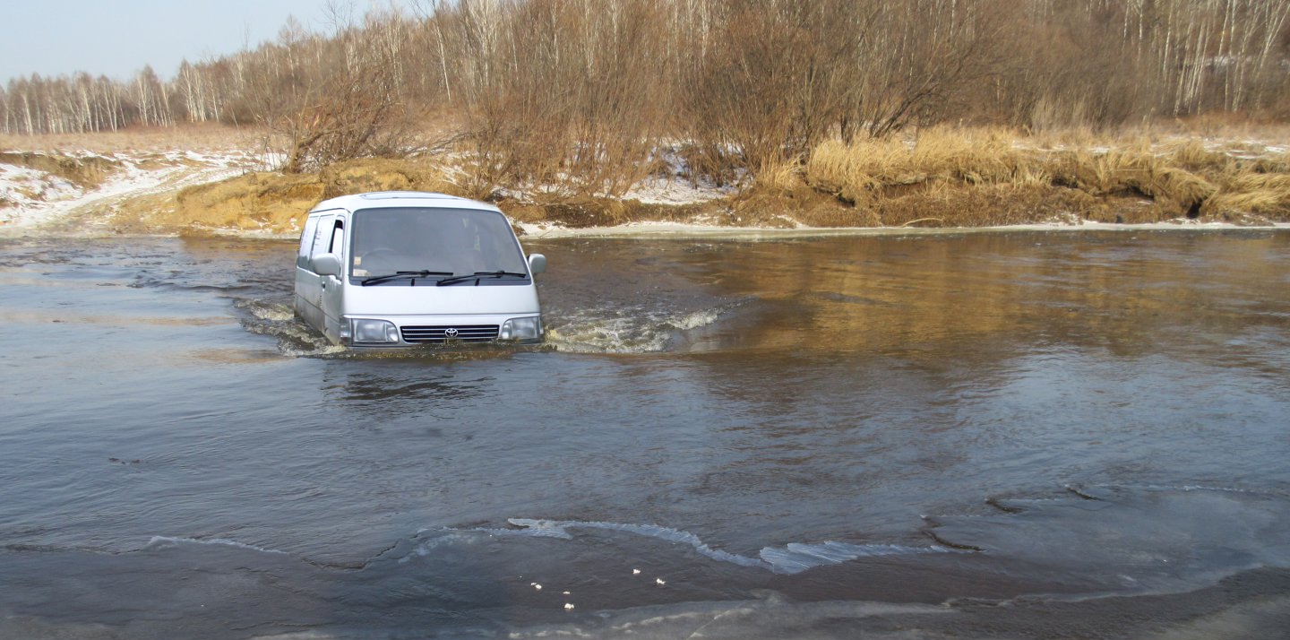 Это хирня, у меня капот был под водой, а в лобовом сантиметров 15 воды. Рыбок не видел)))Не мое, с интернета. А вам слабо.
