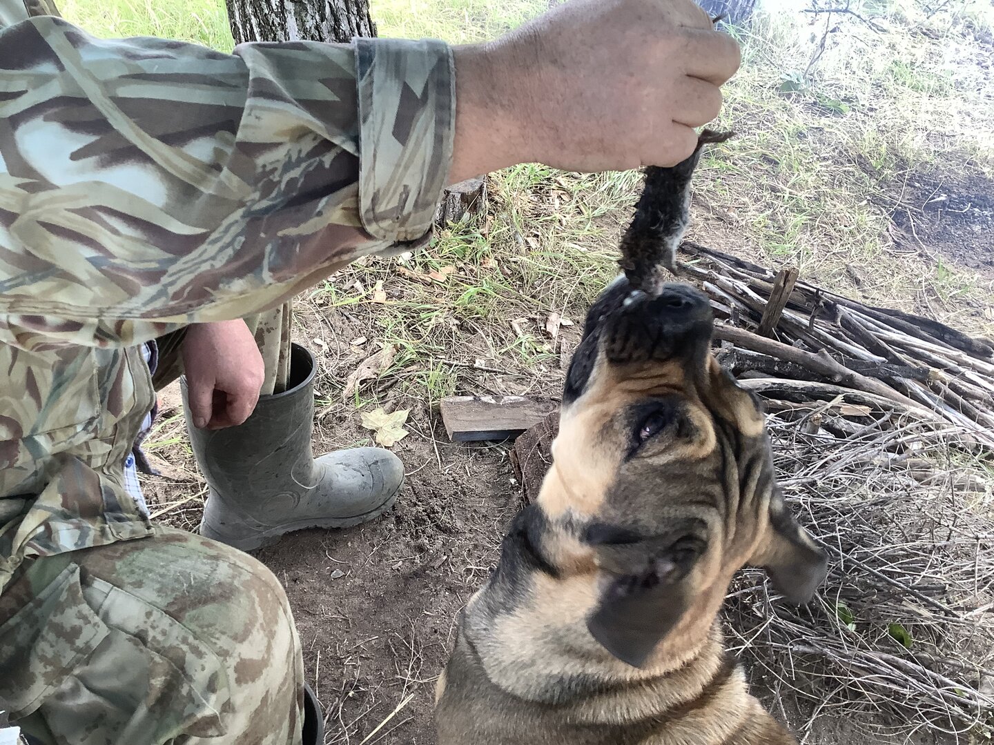 Нормальная собака. Для этого и берём их с собой иногда на рыбалку. Зачем тушонку покупать. Мой кобель бывает и копытных к табору иногда подгоняет.