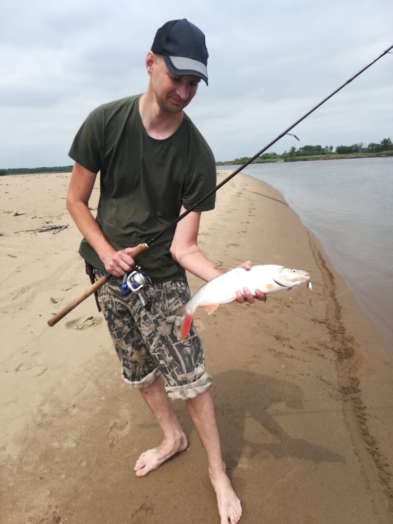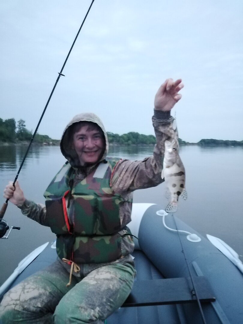 3-4 числа состоялся выезд на один из многочисленных заливов Тунгуски. Погода не сказать что радовала – было облачно, иногда шел дождь. Организовав лагерь, решили отправиться испытывать удачу на меляк с кувшинкой, в которой периодически наблюдались всплески и разлетающийся малёк. Не получив желанную поклевку на поверхностную приманку, было решено пробовать резину на офсетнике, утопленном в тело приманки. Через непродолжительный промежуток времени начались первые поклевки, стало заметно, что весь хищник стоял прямо в кувшинке или на самом её краю. Первой в лодке оказалась некрупная щука, за ней следовала пара мелких сомов. Так и продолжалось ещё с час, желаемого змееголова не наблюдалось. Со временем поклевки становились всё реже, стали появляться мысли о возвращении в лагерь, как вдруг в 5 метрах от борта лодки мы заметили огромный бурун, по направлению движения которого всплывали пузыри. Думаем, что наконец-то «он» выдал себя. Выполняю заброс по направлению движения хищника, но в предполагаемом месте поклевки её не последовало. Решаю проводить приманку до самой лодки, поскольку ранее так уже была поймана рыба. И вот, я уже вижу свою приманку, выходящую из зарослей кувшинки, как замечаю стремительно всплывающую за ней, как казалось, метровую рыбину. Происходит поклевка. За ней следуют подсечка, завязывается борьба: визг фрикциона на коротких рывках, давление в руку, всплески, окотившие всю лодку. Итак, моя первая трофейная щука в подсаке, вскоре и в лодке. Может борьба действительно продлилась не долго, а может просто хочется ещё). Руки тряслись ещё около десяти минут с момента окончания борьбы, счастью не было пределов. Длина рыбы от кончика носа до кончика хвоста составила 92 сантиметра, а вес 6 килограмм. Сработал силикон Allvega Fat Bonito в цвете gold fish.