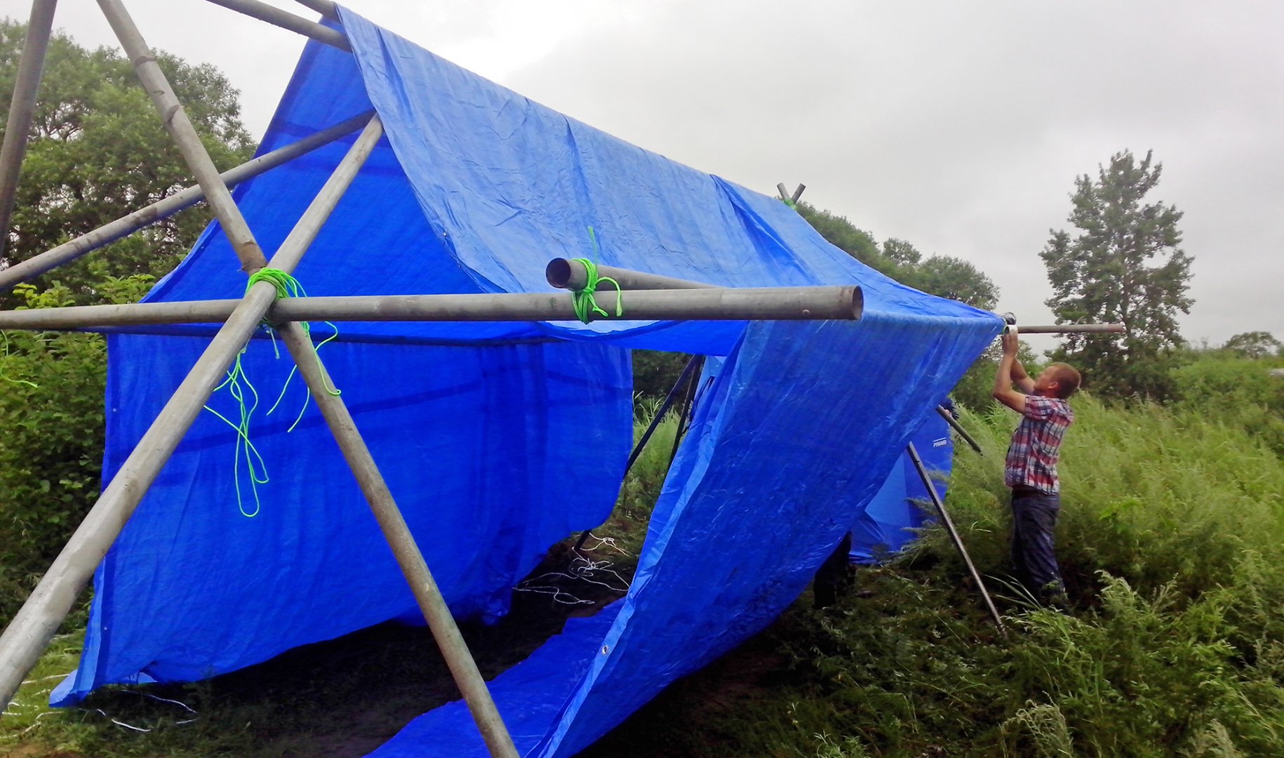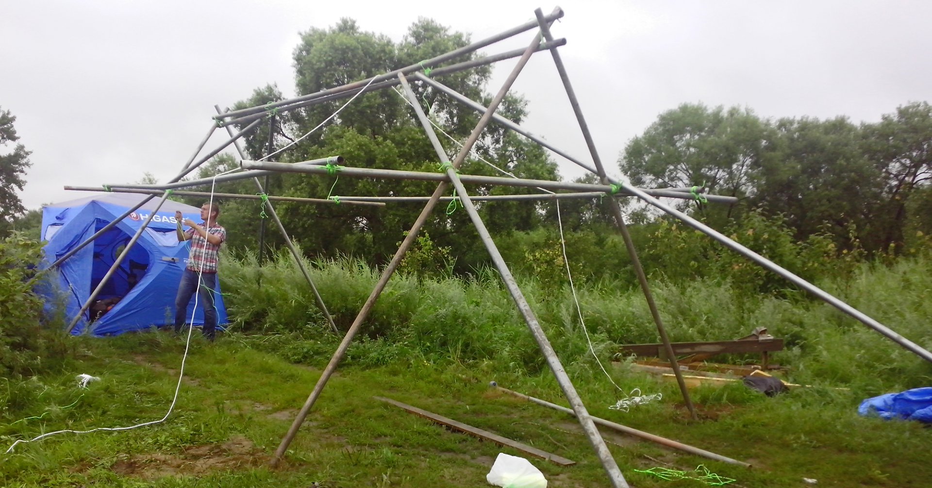 Именно так хочу назвать супер-конструкцию из оцинкованных труб придуманную Андреем по ходу строительства.