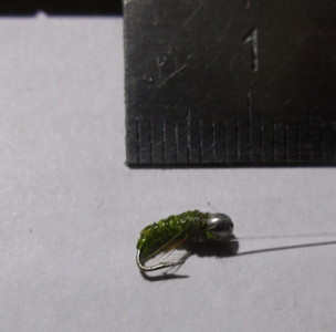 Но место настолько хорошее - проупражнялся часа полтора. Уже сматываться надумал, и вдруг... Поставил ооооочень экзотическую муху - в 2 раза меньше обычной харюзовой. И выстрелило! Не сходя с места около 60 поклевок, половину удалось вывести. Именно "вывести", на мель, поднять из воды никакой возможности - мелкий крючок рвет губу. Эту муху я сохранил. На память. Ловить на неё потом пробовал неоднократно - больше она ни разу не работала...
