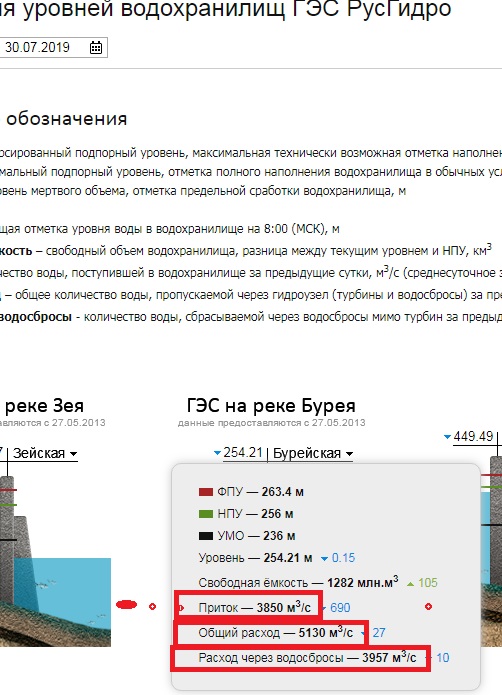 у с. Елабуга Хабаровского района – уровень 337 см (+23 см за сутки), при неблагоприятном явлении – 450 см, опасном явлении – 550 см. При неблагоприятном сценарии развития паводковой обстановки к 9-10 августа по расчетным данным уровень воды может достичь 520-580 см.
