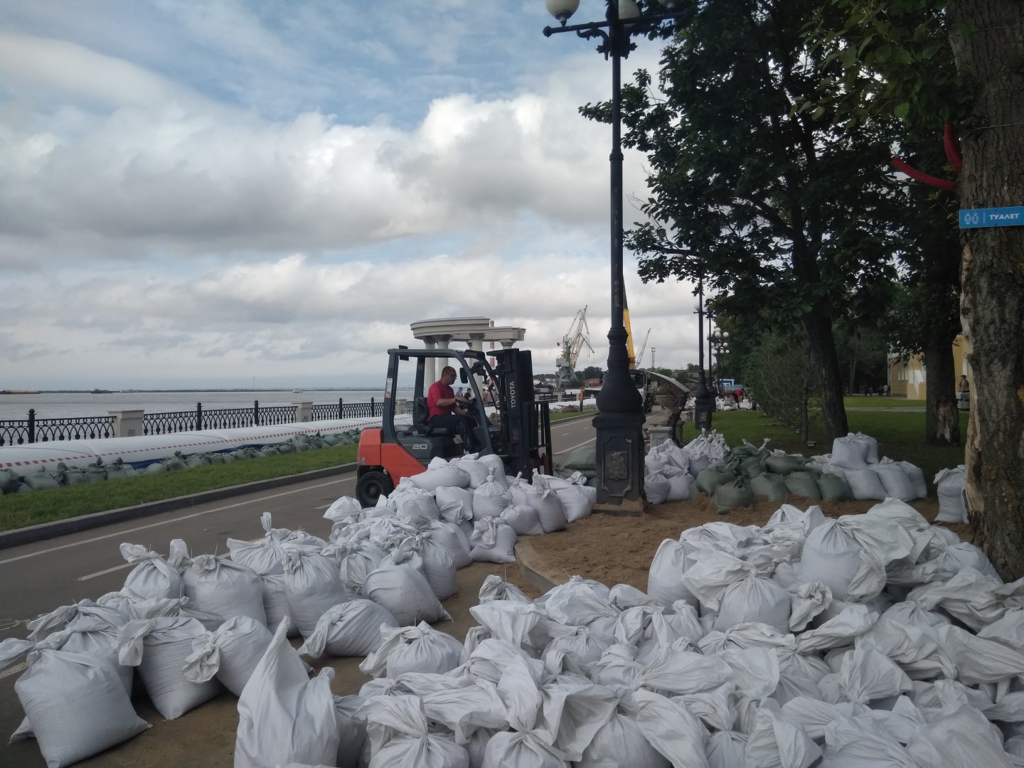 Вчера на набережной перекрыли подход к воде и установили водяную дамбу.