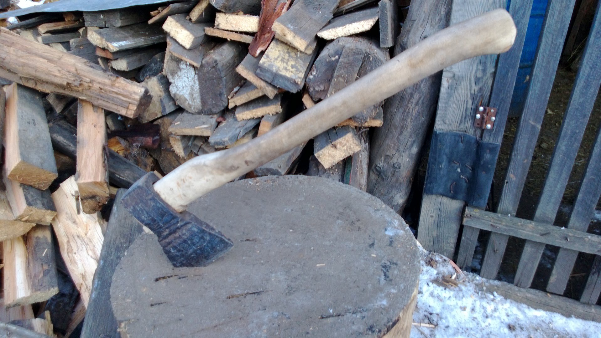 . Куча лишних движений и усилий (для её натягивания). Постоянно слетает. нафик её! Висит сейчас в кладовке. Когда дров много (как у меня сейчас, около 10м3), поможет только ежедневная зарядка с колунчиком по утрам и вечерам!Первый на фото очень хорош по костям чем по дровам!!!Люблю рубить дрова.Для этих целей есть у меня несколько топоров.