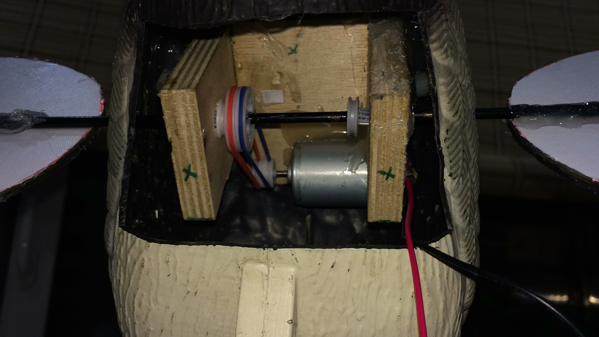Пока охота не открылась заморочился переделать ветровое чучело mojo wind, ветер когда слабый, или меняет направление - то чучело это как статуя стоит или машет одним крылом) Подсмотрел у сибирского умельца идею саму, как он делает с нуля махокрылов и заморочился. Внутрянку купил в Хабаровском магазине двробот, если бы делал второй раз - заказал бы с али большую часть, выйдет дешевле. В этот сезон тест если пройдет нормально - докуплю на али приёмник+пульт ДУ, пока включение с кнопки. В воскресение будет длительный тест на балконе на живучесть конструкции и время работы от 6шт АА. В случае необходимости чучело опять будет ветровым, крепления для штатных крыльев внутри осталось. Болтается сильно штатный штырь металлический, люфт большой у него в местах стыка колен, изолента решит проблему.