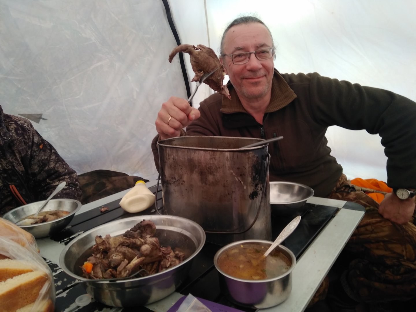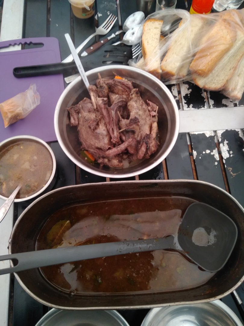 ...и что то кааааак упадёт сверху. Ну прям под ноги. Это дружище постарался. А гуси....ну гуси полетели дальше, в своём трёхсотметровом коридоре (штиль практически). Уронили ещё там чеготонесколько, снова будет шурпа...