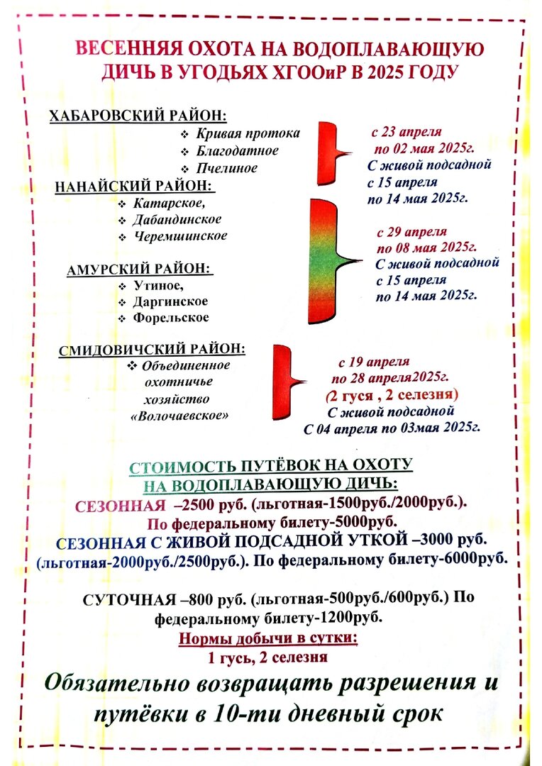 Закушались наши Хабаровские общества! Знакомый с Николаевска взял по федеральному сезонную за 1500р,всем бы годик брать в общедоступные,посидят они без копеечки,может одумаются?Откорректированы цены на суточную охоту. На первой странице изменил. Посмотреть вложение 415435