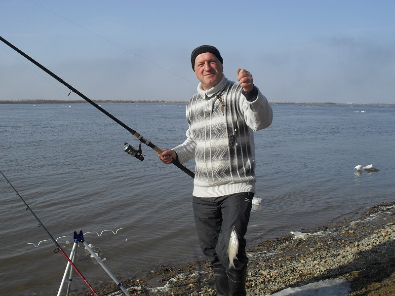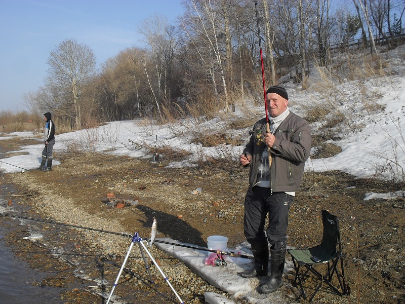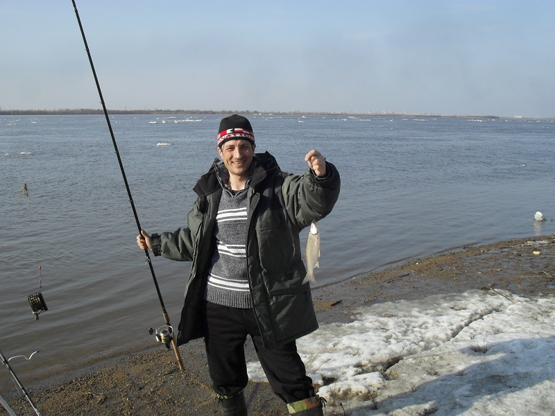 Выбрались сегодня на три часика с фидером посидеть, отдохнуть, я и Боря (Бублик). Решили далеко не ехать, можно сказать рядом с домом. Погода великолепная, ветра нет, солнце по летнему припекает, временами становилось даже жарко. Замешали прикорм, подготовили снасти, начали рыбачить. Забрасывали не далеко, метров 30, Дальше бросать не имеет смысла, хоть глубина и не большая (около 1.5м), но течение очень сильное и гонит шугу, ближе к берегу всё же было по спокойнее. Долго поклёвок ждать не пришлось, мелочь то и дело объедала насадку (ловили на червя). Ну хоть и мелочь, а всё равно приятно. Первый рып был пойман мной, маааленький пескарик, пофиг что маленький, главное хвост.