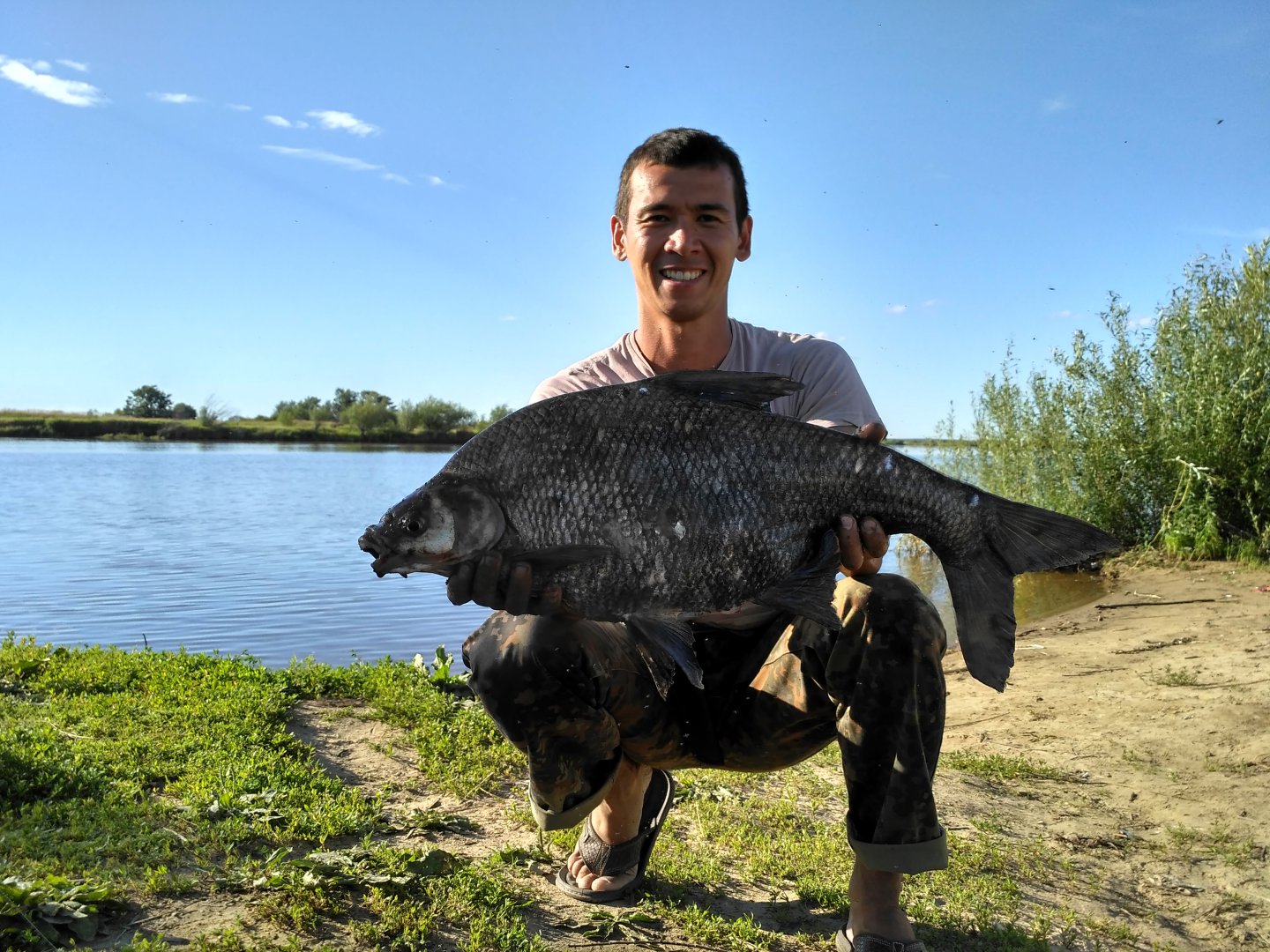 Это я:E001: . Да если честно ни как не мог найти сазана. Денис уехал , я пересел на его место. дистанция 70-80м. Прикормка аллвега , дип трапер мед. 1-обрыв, 2 схода, 2-сазана, 1-карась гр. на 600, 1-лещ-гр.на900, за 3 часа.