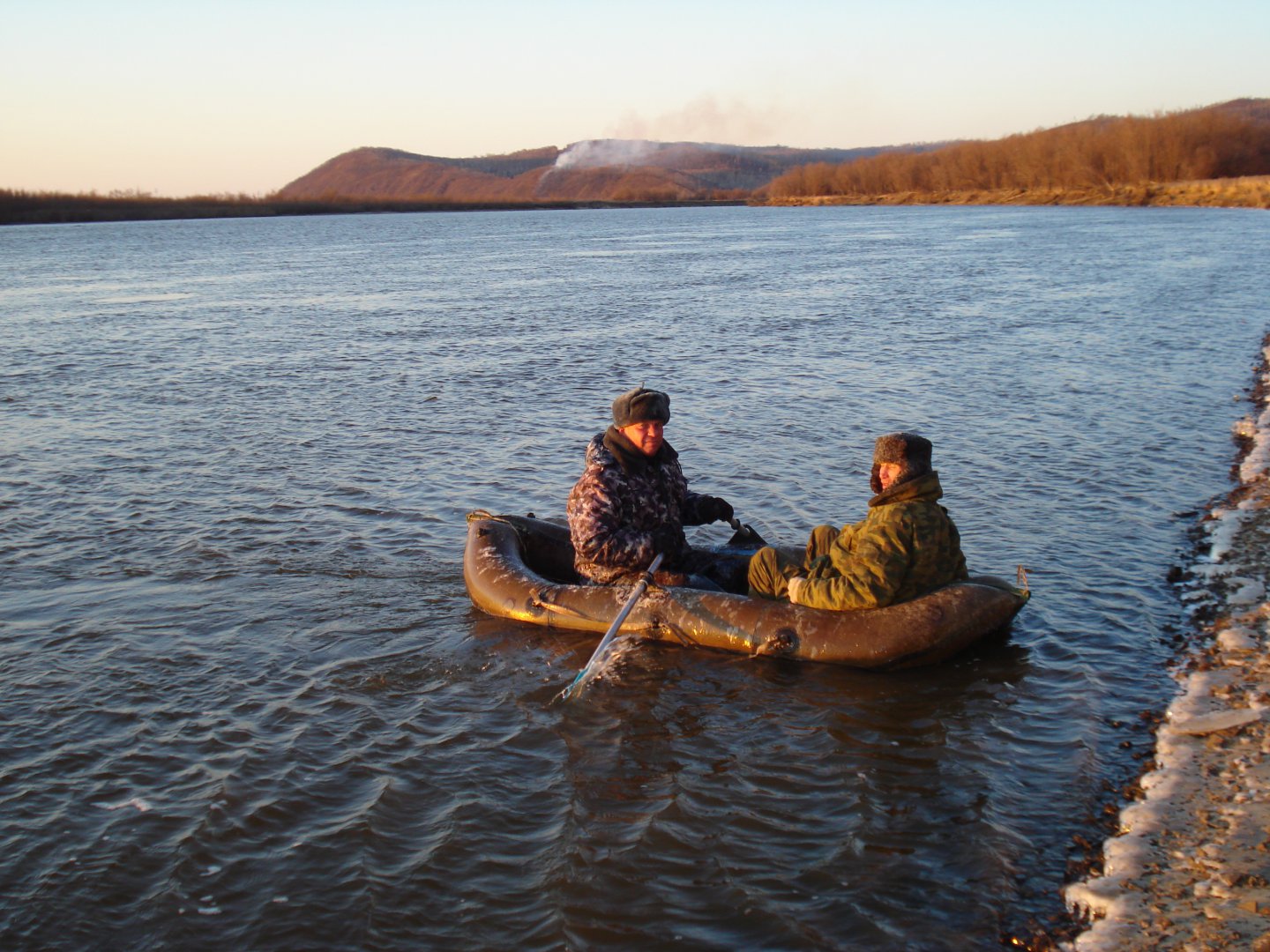 На такой вот обледенелой плавсредстве как в конце октября переплавлялись через протоку,да ещё и сломанной лопастью весла,приятного мало,хорошо.хоть ветра сильного не было.Клапана еле пассатижами открутили.