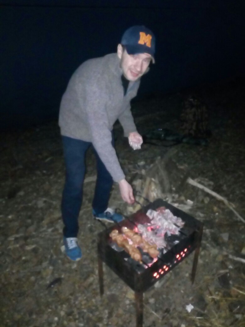 В это время Друзья готовили шашлык, собирали дрова, готовили ужин, который мне очень понравился!))