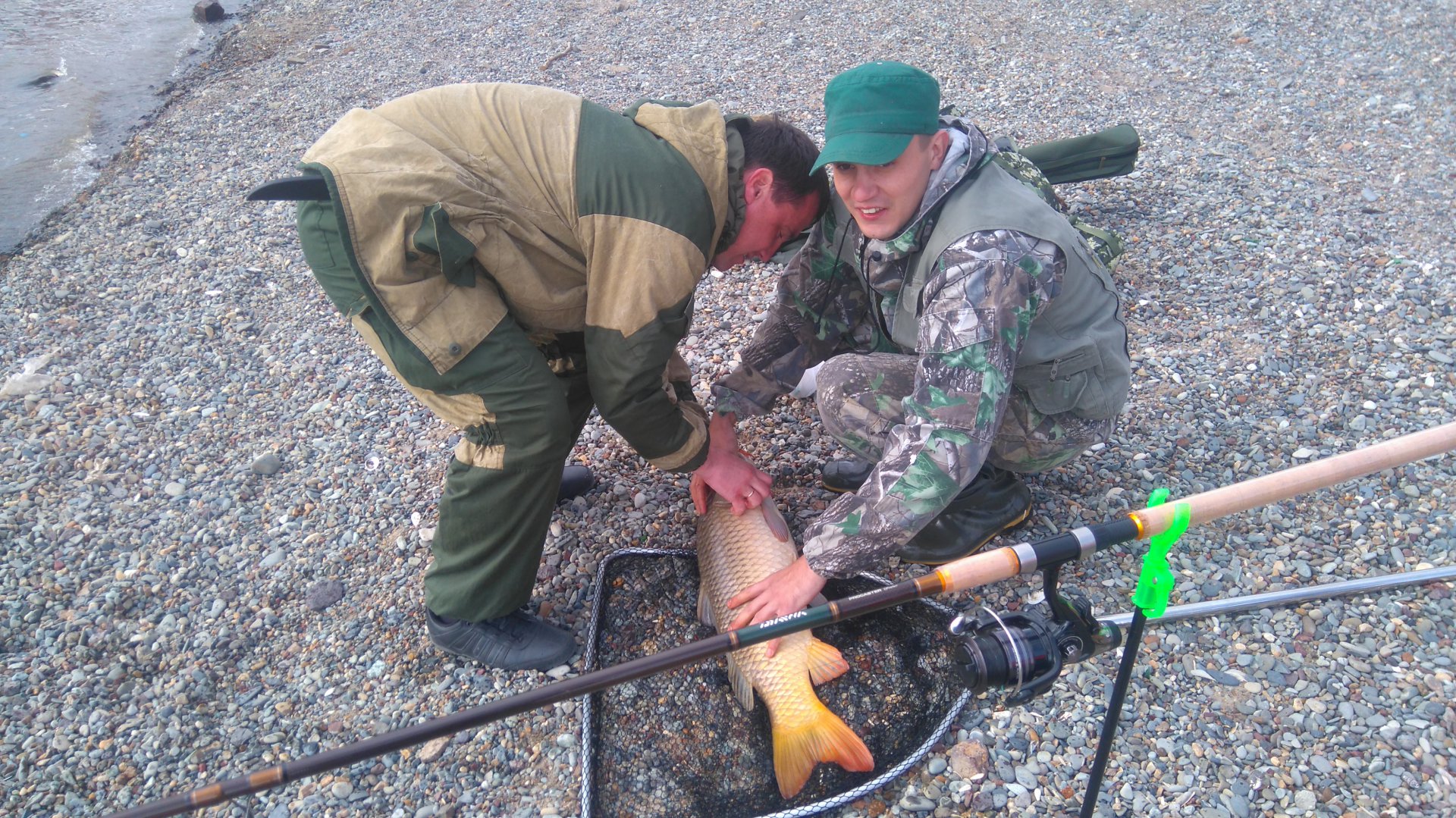 Вчера,после домашних дел,было принято решение вырваться и посидеть с донками на всем известном месте,так сказать масть проверить и душу отвести,после 4 месяцев на Сахалине,страсть как хочется на рыбалку в родных местах. По приезду задобрили Подю и снасти в воду. Первое место оказалось зацепистым,но пару коней принесло,осмотрели берег и переместились в более,на наш взгляд,удачное место. На червя долбили пескари и косатки,косатки домой,пескари в баночку. Где-то через час хорошая уверенная поклевка,спиннинг забило,подсечка,вываживание на ослабленом фрикционе,приятное его жужание и небольшой сазанчик на берегу,потом опять косатки да коньки,к 18 часам размер крючков увеличился и в ход пошли пескари и нарезка из коней,первым был сомик который взялся как только груз остановился после протяжки течением,затем пошли плети,одна была очень не плохого размера,черно-коричневая,а не желтая как её младшие сестры, но фото не делал,да и много таких моментов не снимал,так как телефон лежал в рюкзаке и руки мерзли от ветра,который постоянно менял направление. И тут у моего друга спиннинг просто срывает с рогатульки,подсечка,несколько оборотов катушкой,рывок в глубину и печальный обрыв в сопровождение громких матов,фрикцион был затянут:E022:
