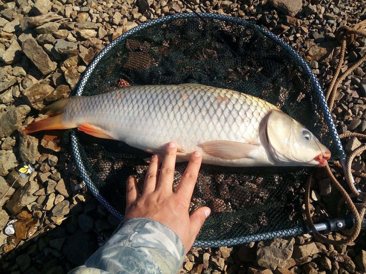 Утро не принесло них.... Только в 11-00 путем обогощения насадки разными вкусовыми амортизаторами, удалось соблазнить пару краснохвостых. Особи были заурядные под трёшку, поэтому фото даже и делать не хотелось.