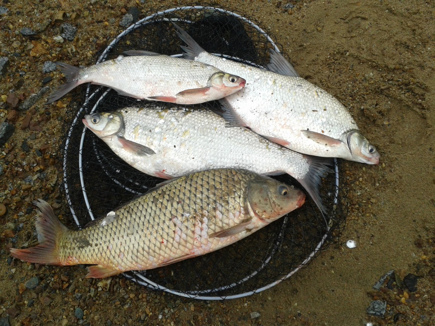 Взял 1 сазанчика и 3 лещи, еще был 2 сазана малых размеров уже отпустил, подрасти.