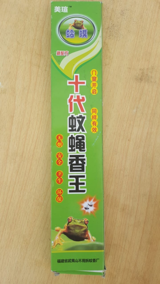 вчера взял на Центральном рынке в голубой упаковке, с русскими надписями. У петухов китайских шелковых гребни так мошка съедала, до крови, криком исходили. Спирали помогали слабо. с этих палочек мошка посыпалась вниз с потолка, немного лежит лапами вверх ,дергается, затем дохнет. Вещь! Спасибо! На пробу взял маленькую пачку 200р, большая 300. В пачке 30 шт