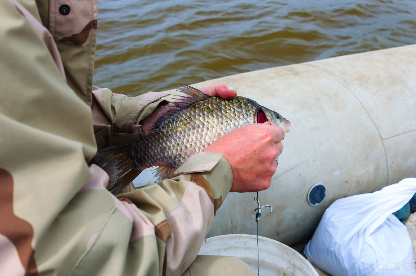 В 5 утра подъем, сразу перезабросы и работа со спомбом. Далее каждый час-полтора перезабросы. Но тишина абсолютная. С 10 утра начало плюхать. И в точке лова, и выше, и ниже, и даже на меляке глубиной пару метров. Порой из воды выскакивали хорошие, очень хорошие экземпляры. Но поклевок нет. Раз плюхается, значит и жрать должен захотеть)) Остается только ждать и наслаждаться природой