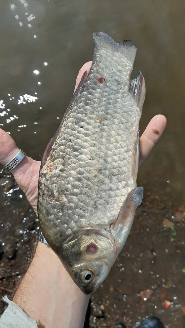 Телефон что-то стал фотать с каким-то оттенком. Карась уже пустой, ну почти, небольшие остатки икры есть, видимо на второй заход оставил.