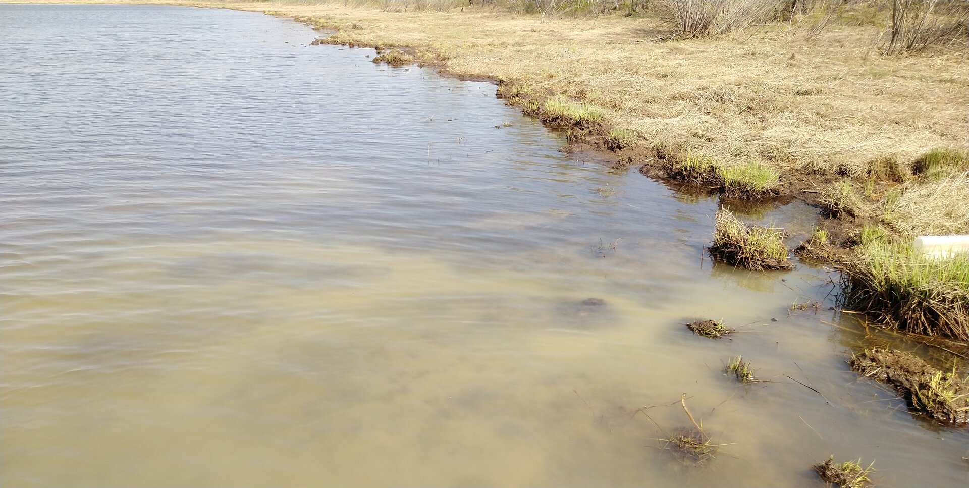 В первой половине мая бороздил оз. Большое, и вот таких пятаков зелени насчитал штук 5. Как будто с полей что то стекало (на фото видно даже канавку). И вода эта зеленаякак бы немного слизкая Посмотреть вложение 349222