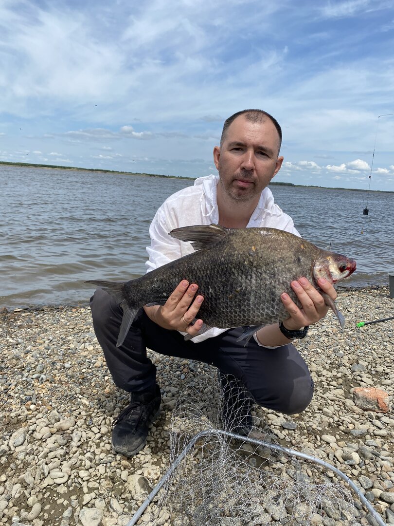 Давненько Я не писал о вылазках на нашу родную реку Амур. За 10 дней отпуска был три раза на рыбалке, в разных местах. Основной целью как обычно для меня являлись сазаны, которые ловились по немногу, с изрядным постоянством. Было поймано более 10-ка сазанов, экземпляры по весу были разные: от 1,3 кг и до 1,5 кг, 2,0 кг, 3,3 кг, 4,5 кг, и другие..., особого смысла не вижу выставлять фотки этих рыб, всем наверно они уже приелись, т.к. чуть ли не на каждой странице форума пестрят фото сазанов,....но выставлю лишь несколько трофейных фото с крайней рыбалки от 01.07.2023 г., на которой были пойманы рыбки покрупнее - это Черный Лещ весом 3,8 кг. и Сазан весом 7,2кг. - ощущения от их поклевки и вываживания, оставили в моем сознании очень яркие впечатления - это были очень достойные "бойцы"! Чаще бывайте на реке! Всем Мира и Добра!