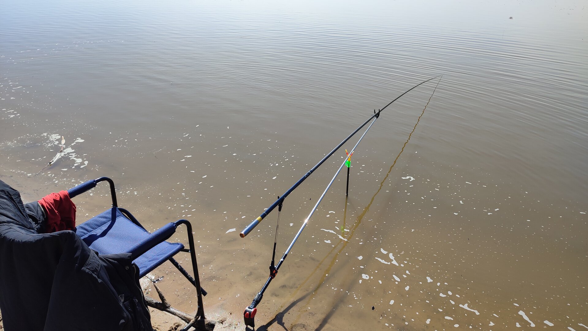Если 3го утром было прохладно , то 4го просто холодно с пронизывающим северным ветром . За утро (ловили часов до 9ти) только 2 карася . А вот на сазана погода не повлияла . Мелких было мало , основные от двух до четырёх .
