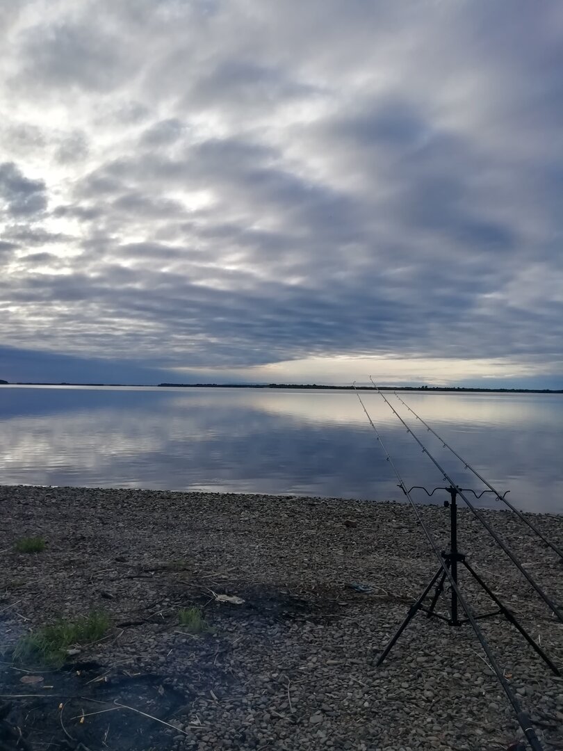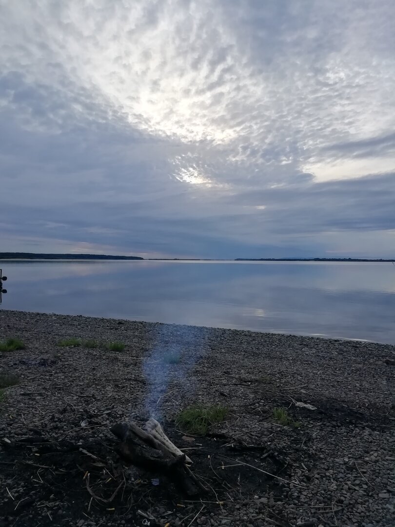 Вчера проснулись а ветра из-за которого уехали вечером с берега и нет. Надо ехать добирать часы наслаждения на рыбалке. Из за быстрых сборов черви и перловка так и остались лежать в холодильнике, да и чёрт с ними будем ловить на то что есть. Отзывы пошли только на пеллетц 10 тутти фрутти. Не частые поклевки в полной мере дали насладится природой, которая на небе рисовала разные картины.